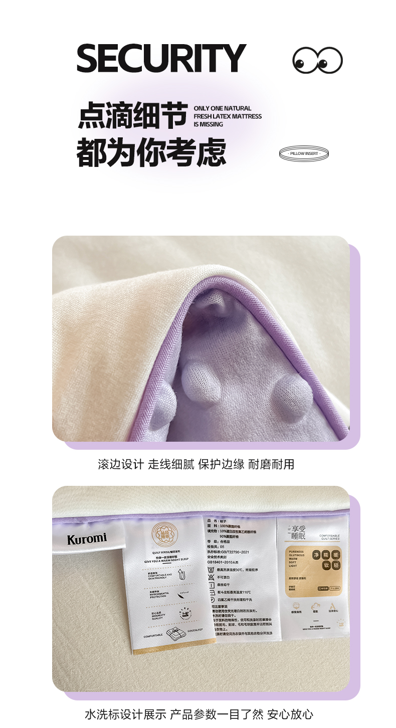 填充纤维种类: 大豆蛋白改性聚酯纤维