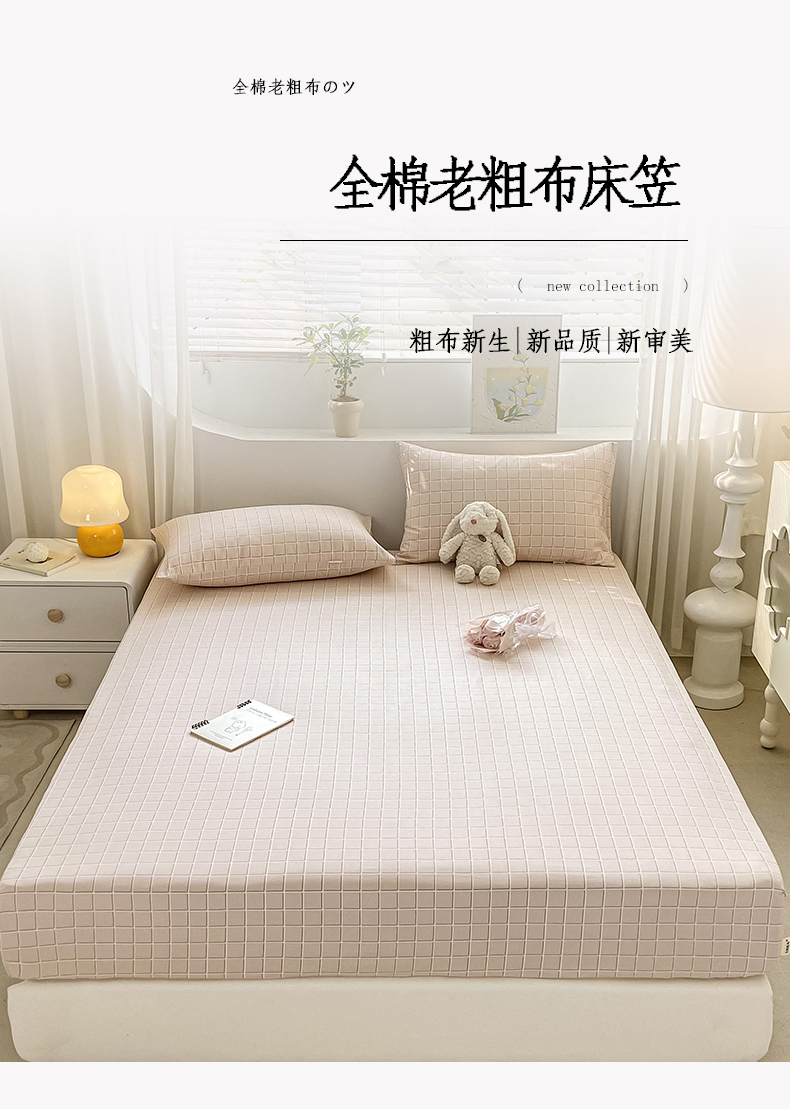 • 91家纺网 家纺一手货源 找家纺 2024新品全棉老粗布单品床笠系列 生巧-米
