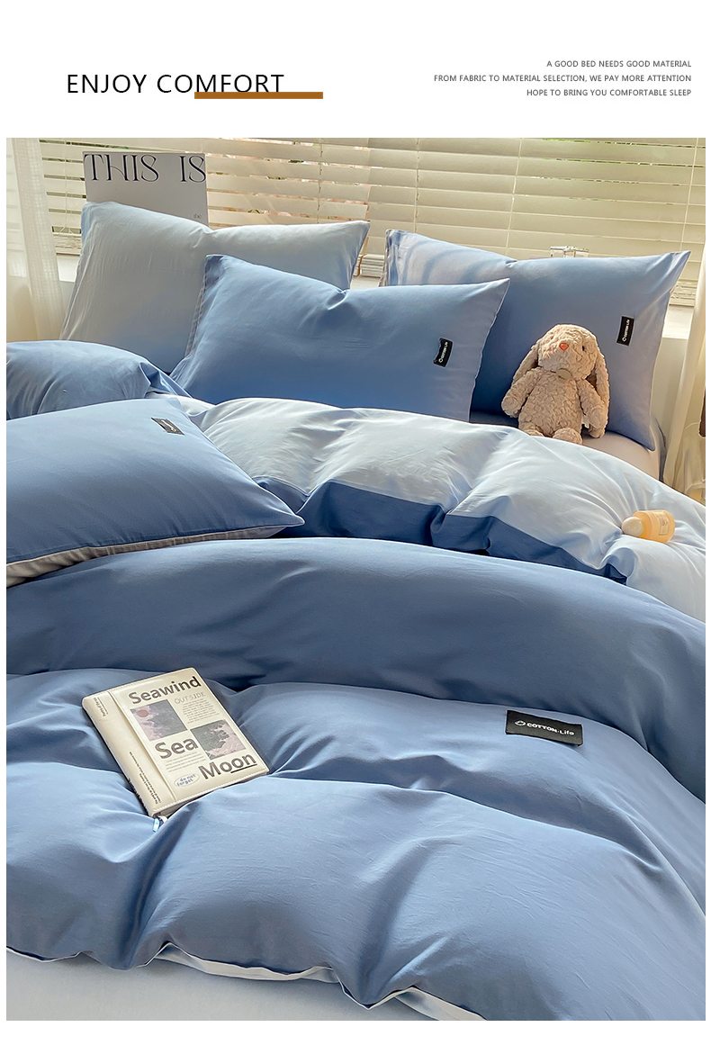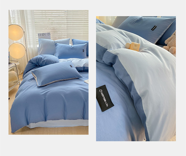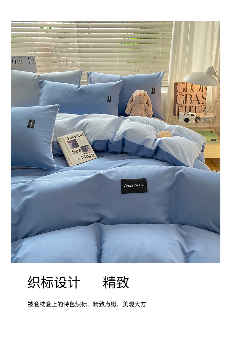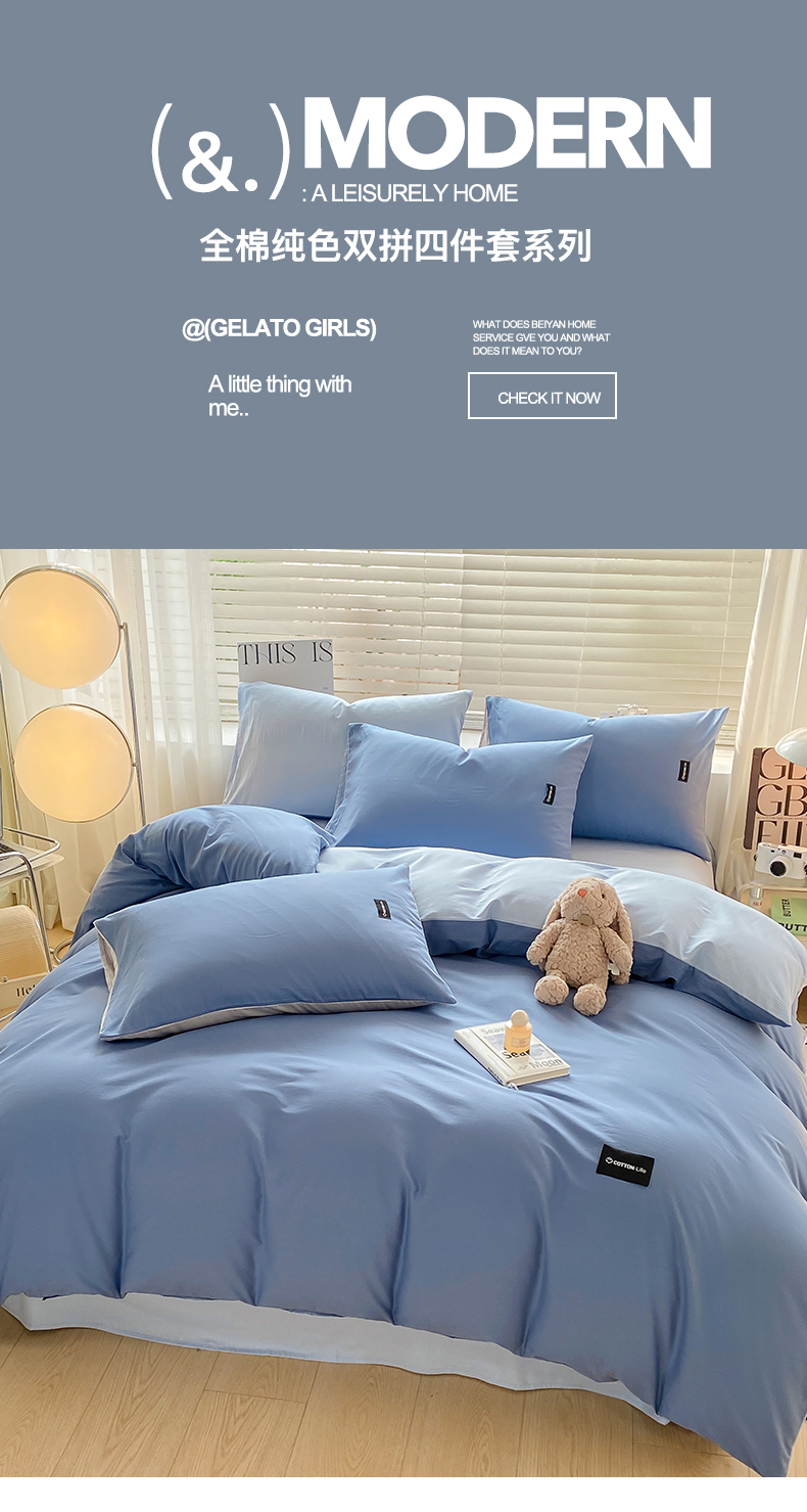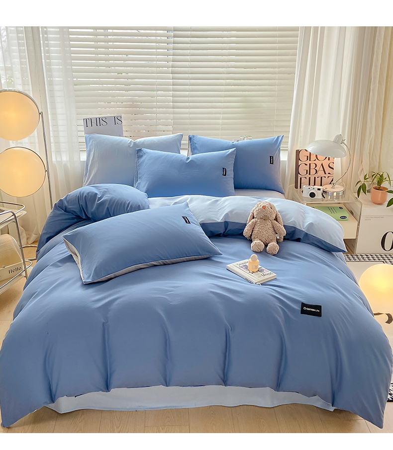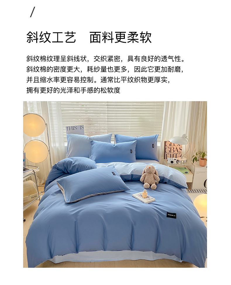 当前位置: 91家纺网 > 商品网购 > 床品套件 > 四件套 > 全棉普通四件套 > 黑马家居 2024新款双拼全棉四件套 宾利蓝+天蓝