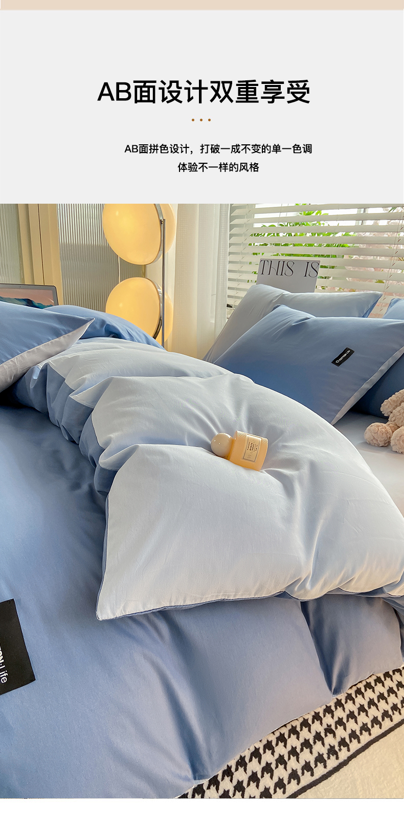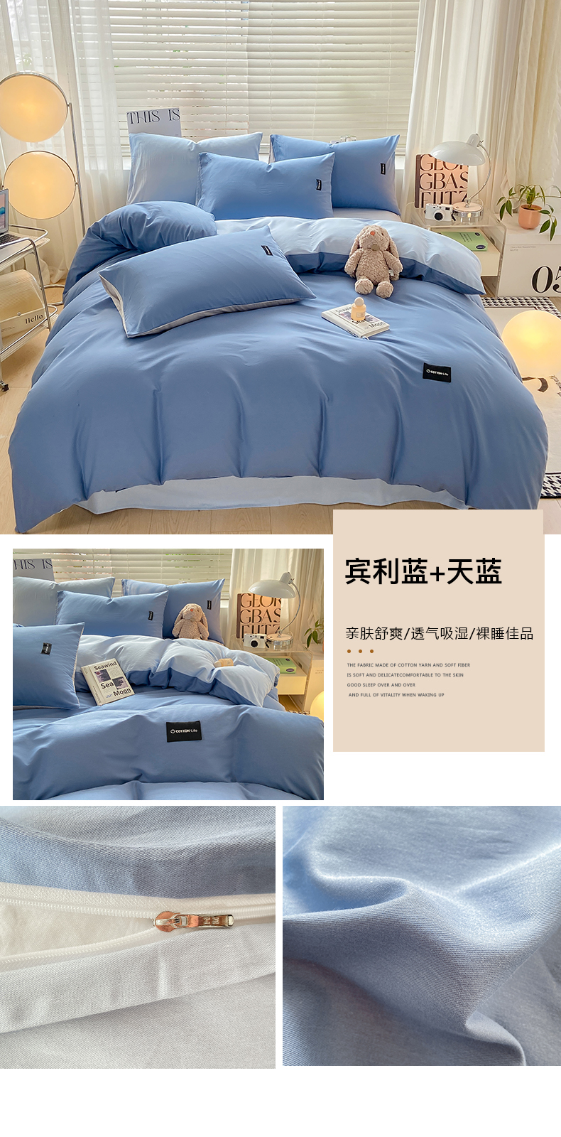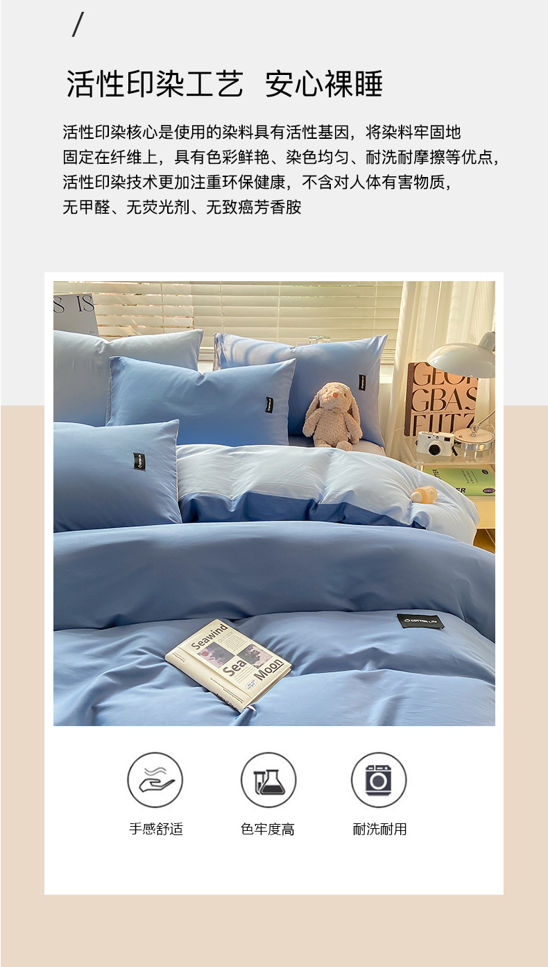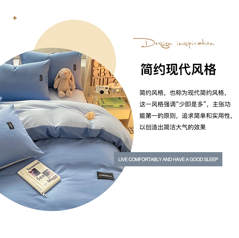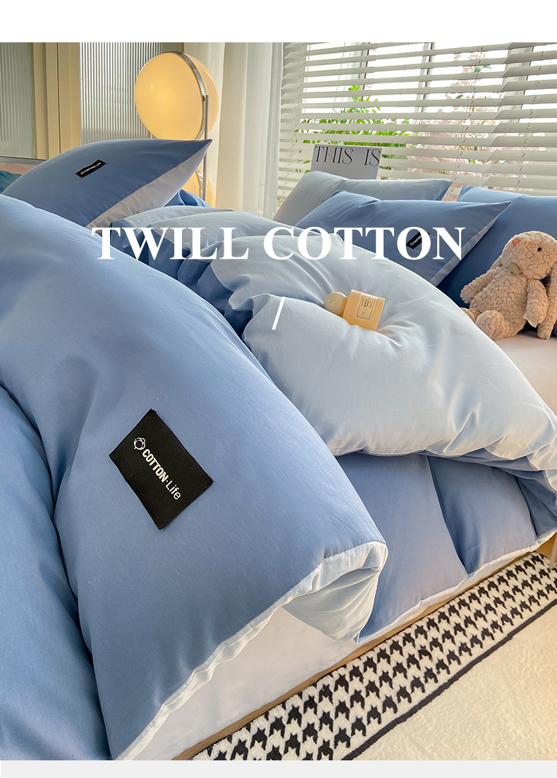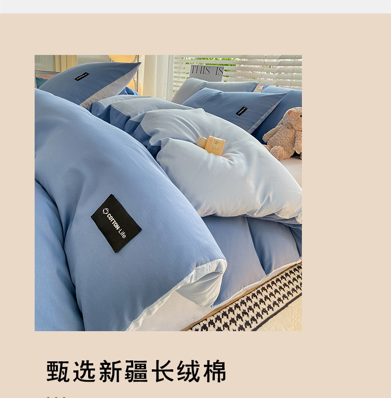 当前位置: 91家纺网 > 商品网购 > 床品套件 > 四件套 > 全棉普通四件套 > 黑马家居 2024新款双拼全棉四件套 宾利蓝+天蓝