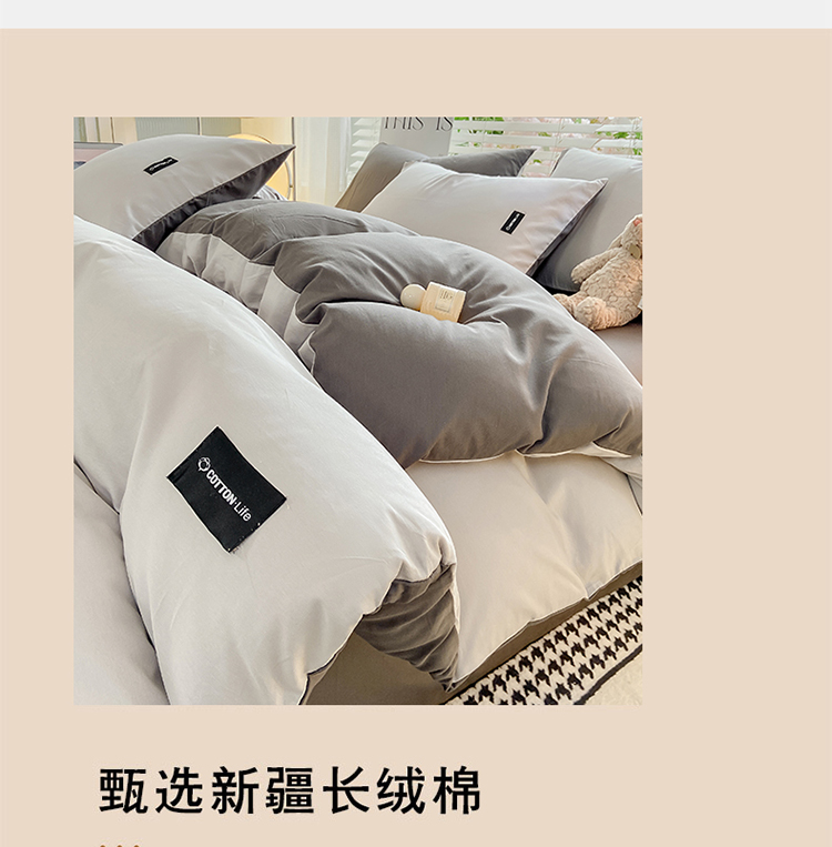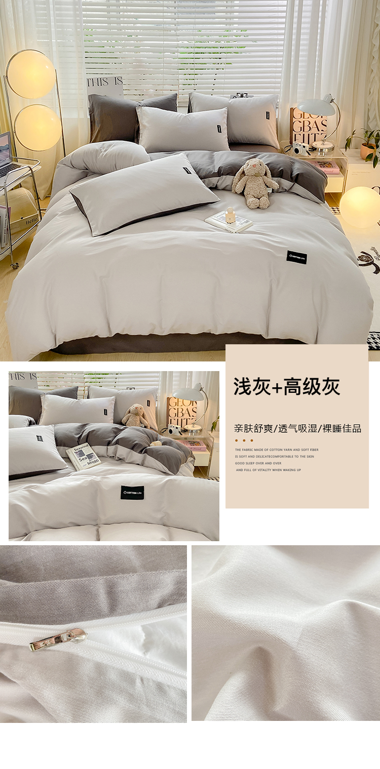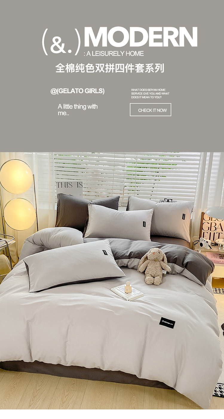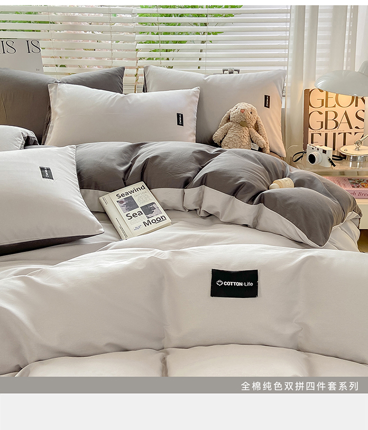 当前位置: 91家纺网 > 商品网购 > 床品套件 > 四件套 > 全棉普通四件套 > 黑马家居 2024新款双拼全棉四件套 浅灰+高级灰