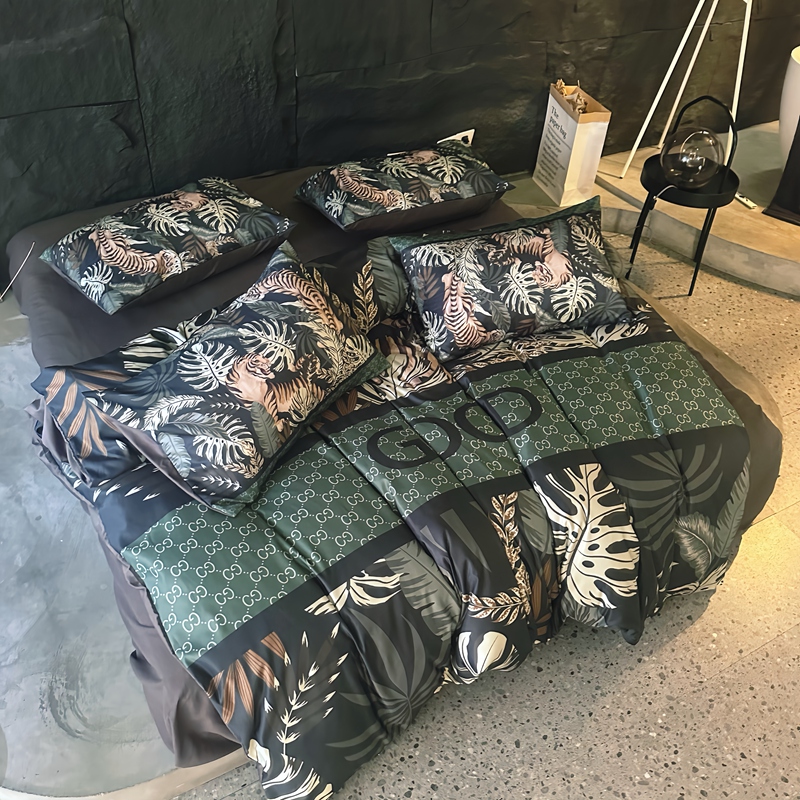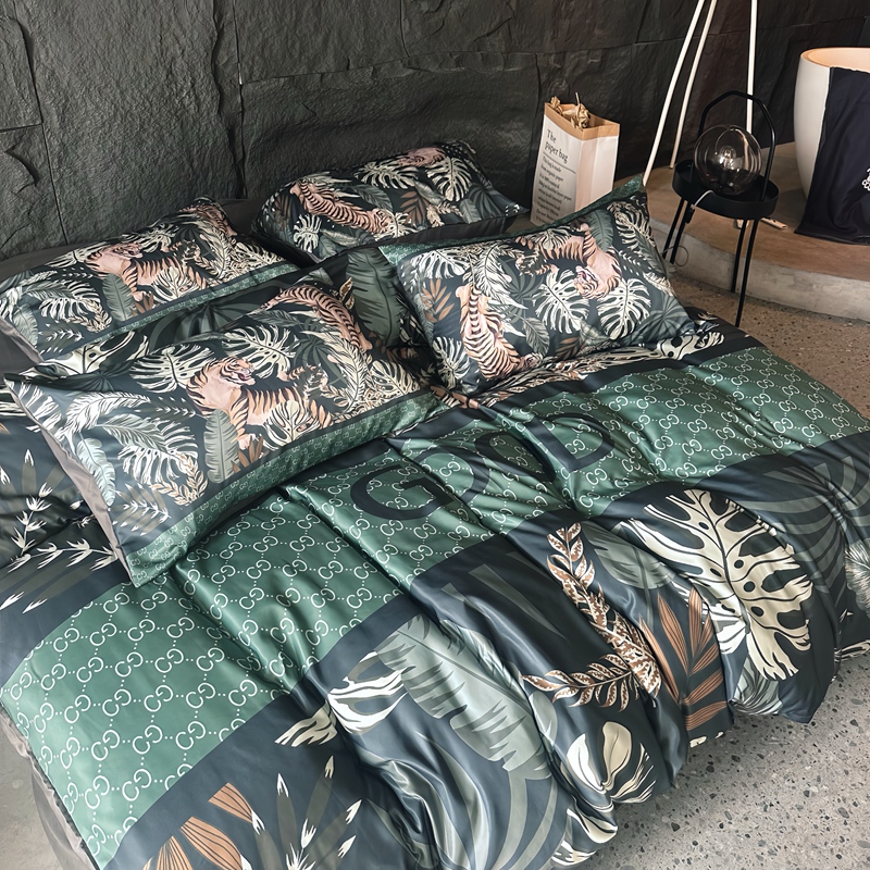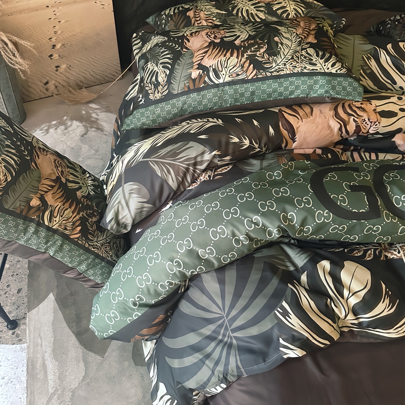 (总)色鬼布艺高端家居主号 2025新款轻奢亲肤纯棉数码印花网红热款四件套,豹纹香,白金V,白香花,大H,黑白迪,黑白V,灰迪,咖古,克莱因,慕斯小姐,山茶花,星空