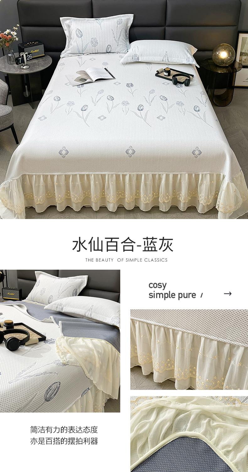 商品名称:恒爱2024新款冰感豆豆床单款凉席 水仙百合-蓝灰