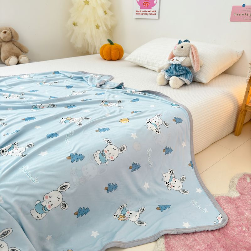 (总)星期八 2025新款婴儿裸睡级冰丝毯凉感毯,草莓小熊,动物乐园,格子熊粉,格子熊蓝,蝴蝶结兔,简笔画,腊肠狗,蓝饼干,苹果象,兔子屋,挖掘机,小恐龙,小鸭子