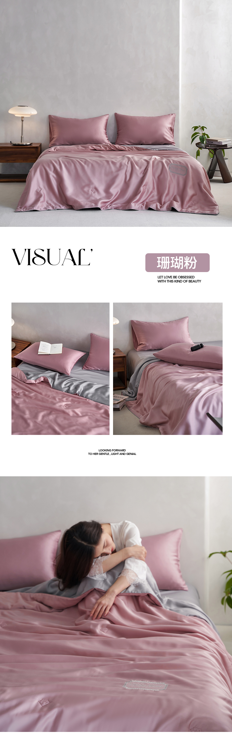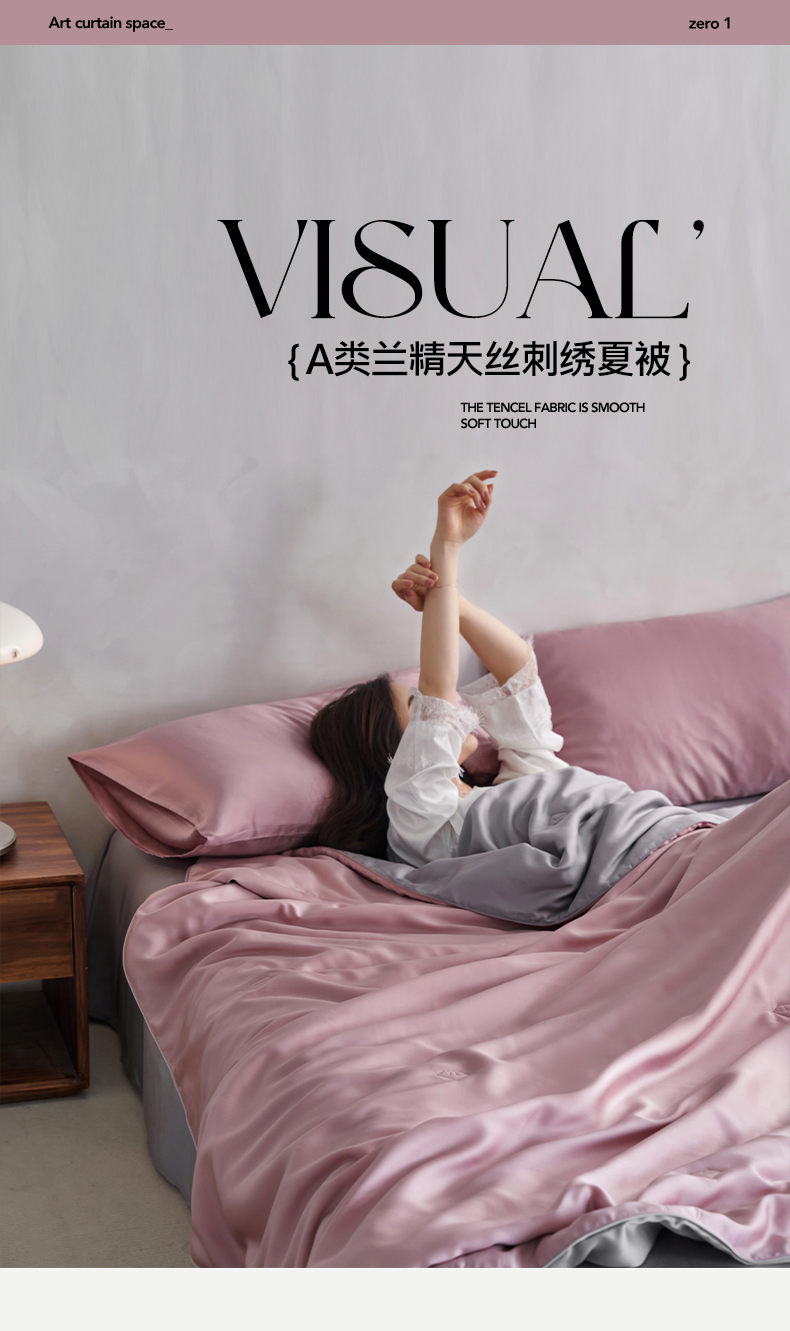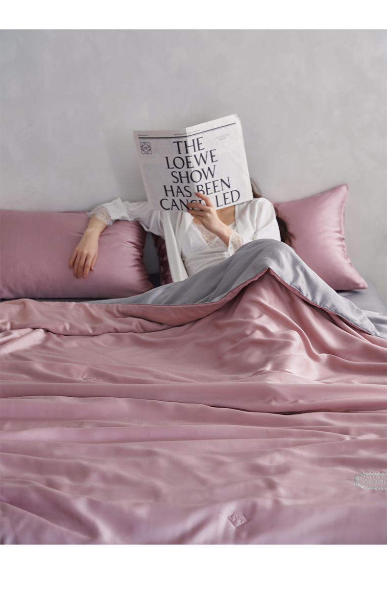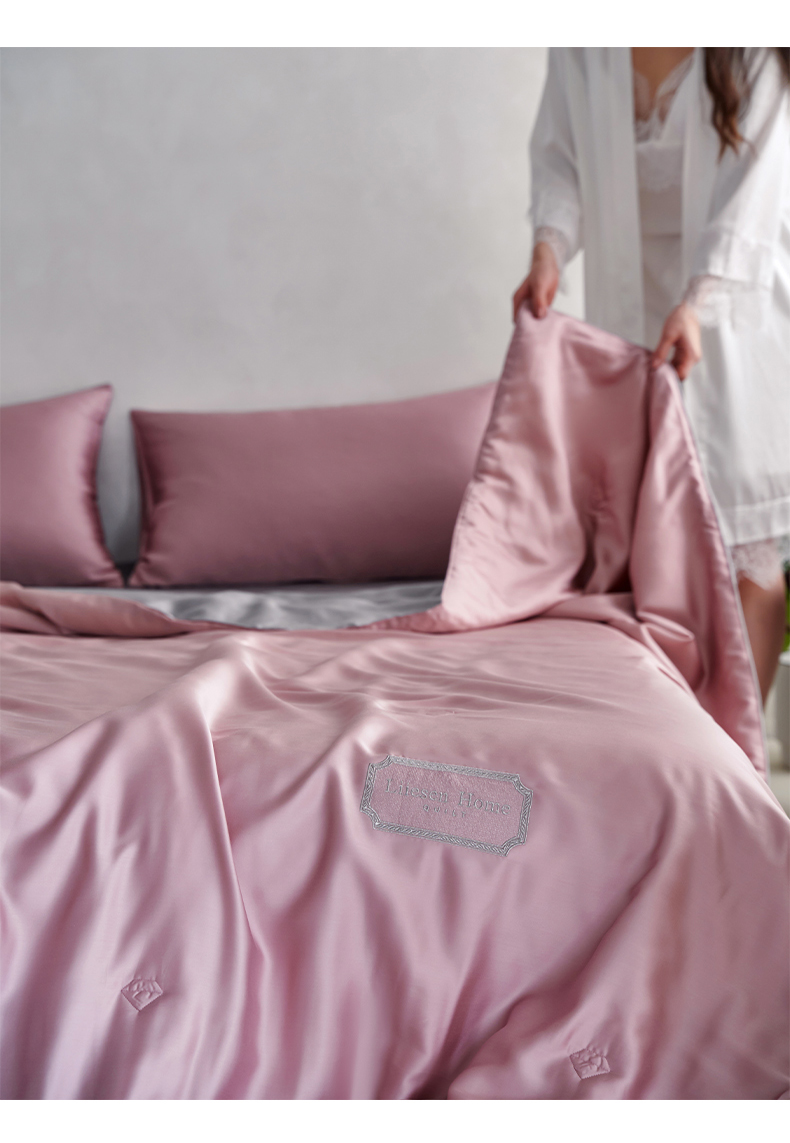 • 91家纺网 家纺一手货源 找家纺 丽笙 2024新款A类兰精天丝素色刺绣夏被被子被芯 炫彩色珊瑚粉