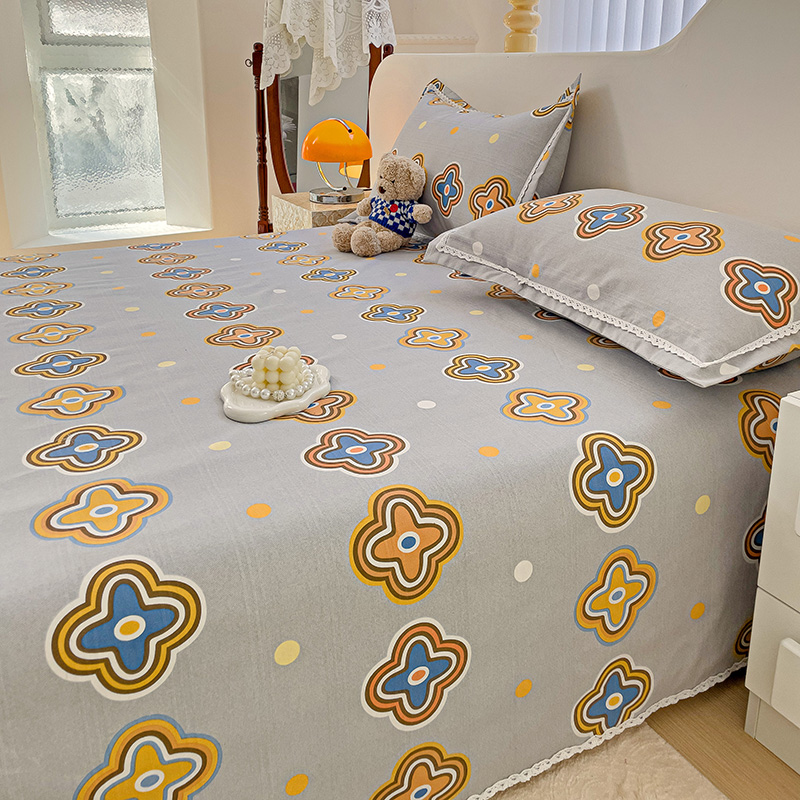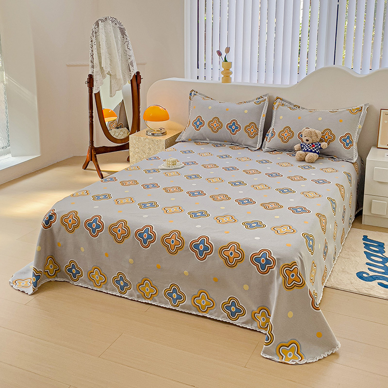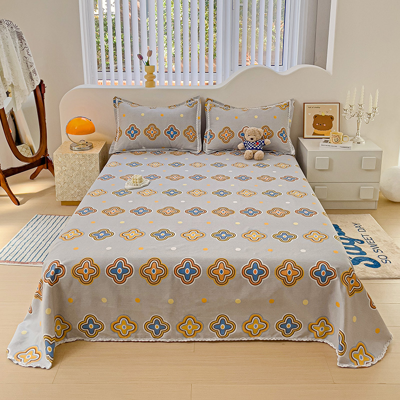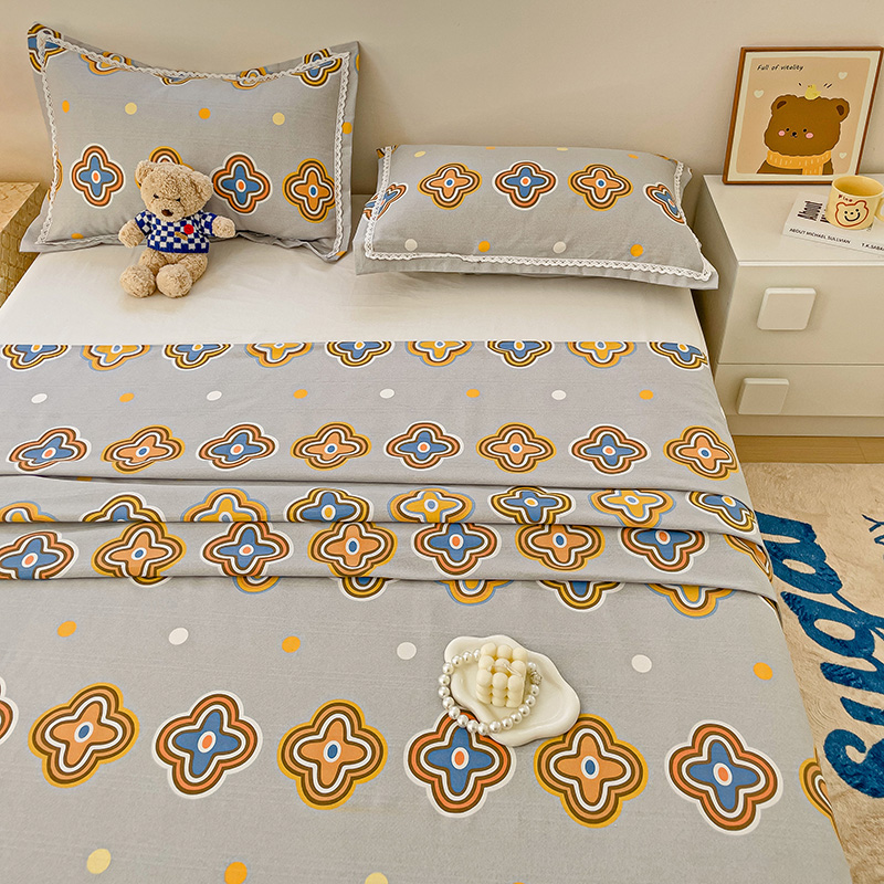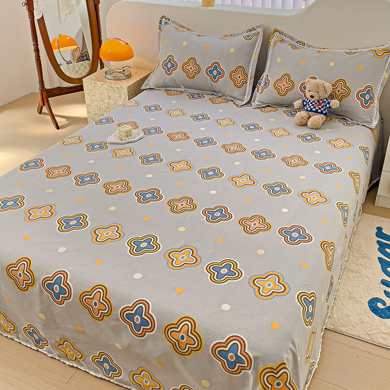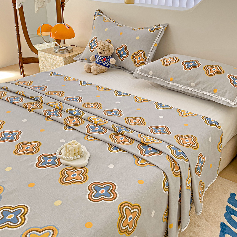 商品名称:鸿羽樱 2024新款鱼骨棉老粗布凉席三件套 四叶草-灰