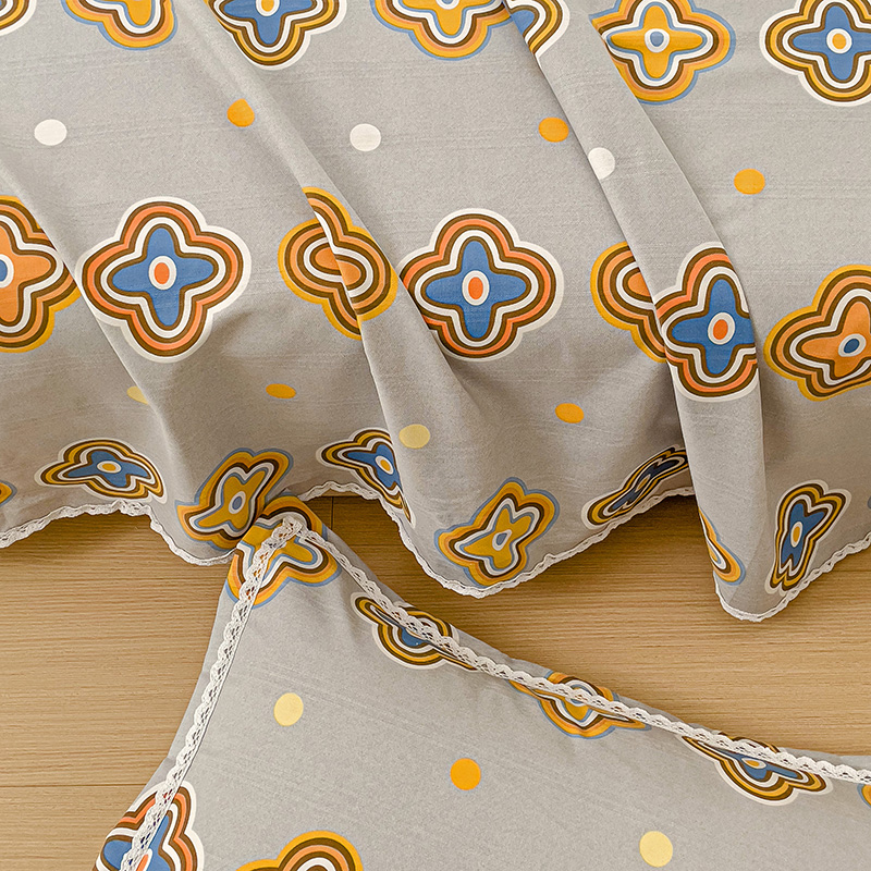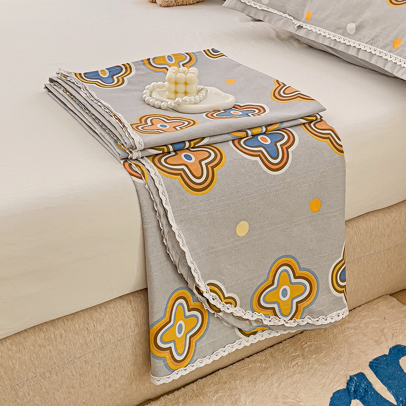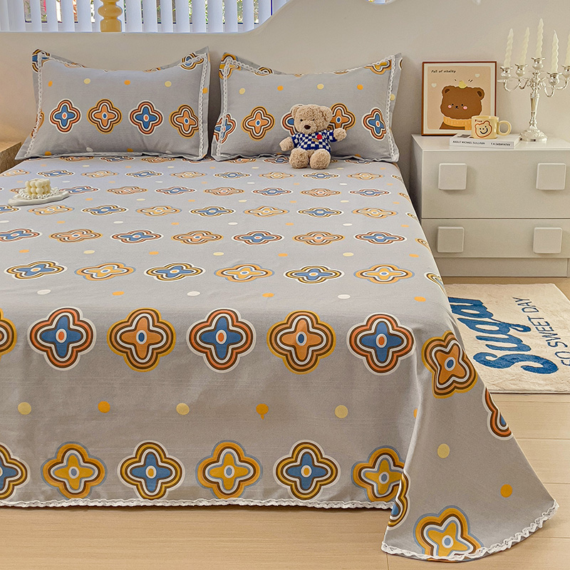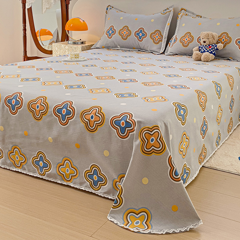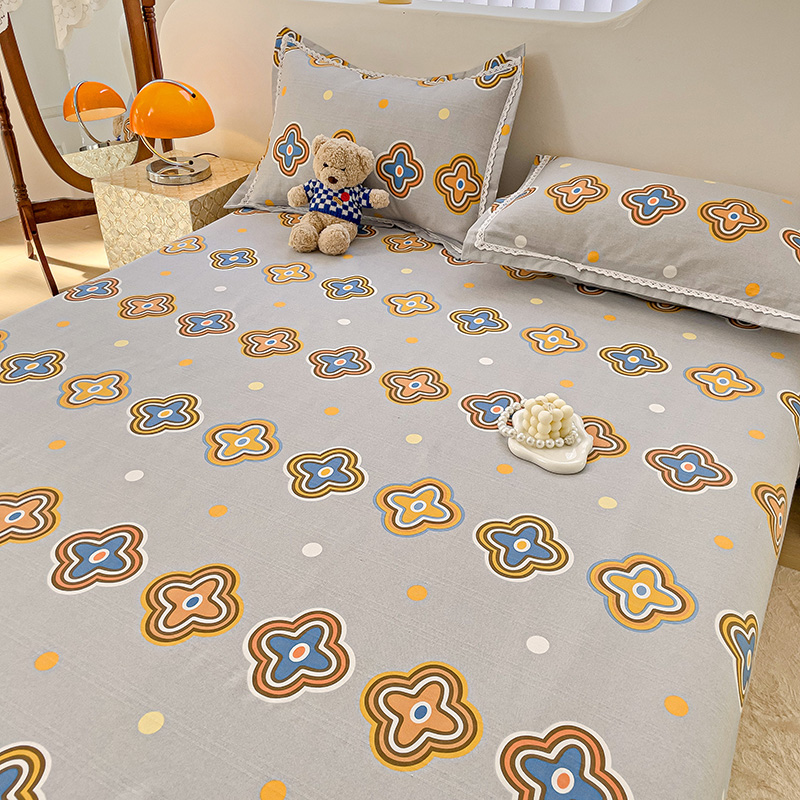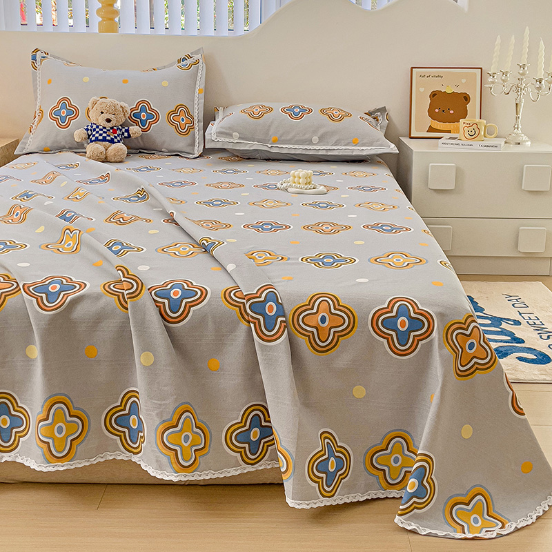 商品名称:鸿羽樱 2024新款鱼骨棉老粗布凉席三件套 四叶草-灰