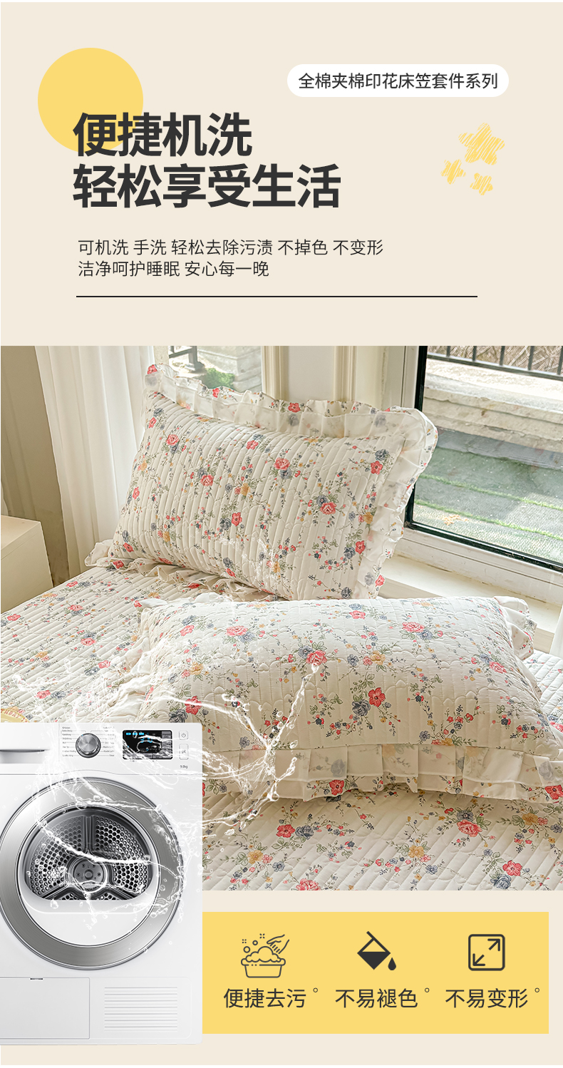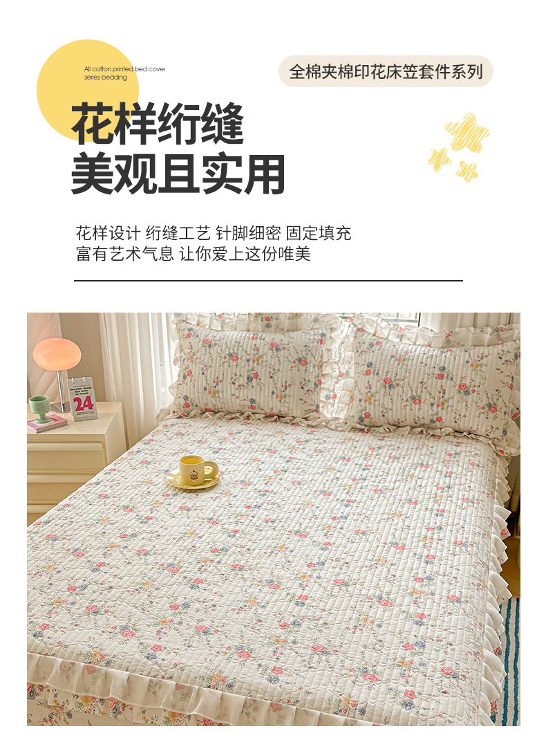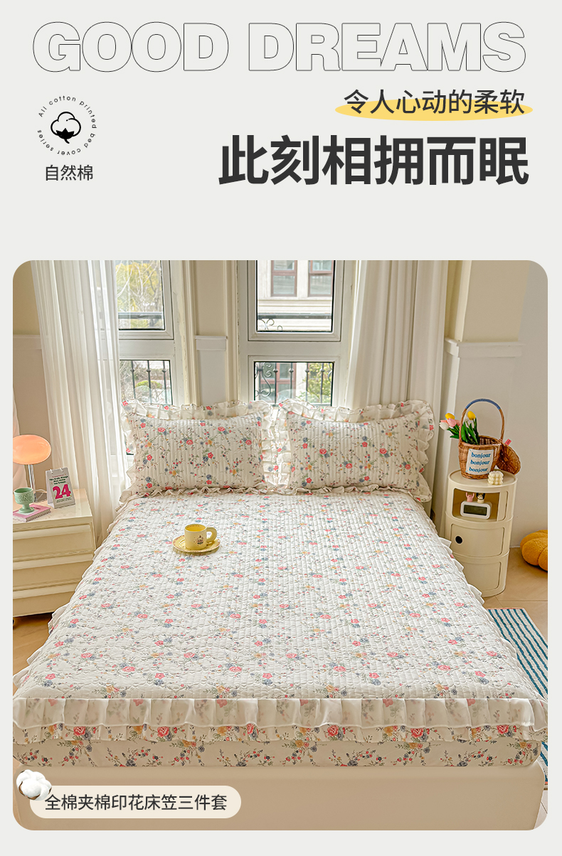 • 91家纺网 家纺一手货源 找家纺 宜凡 2024新款全棉床笠双层花边三件套 晨露微醺