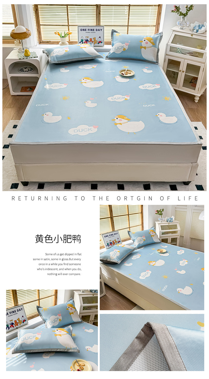 • 91家纺网 家纺一手货源 找家纺 栩裕纺织 2025款数码印花1200D碳光牛奶冰丝凉席 黄色小肥鸭