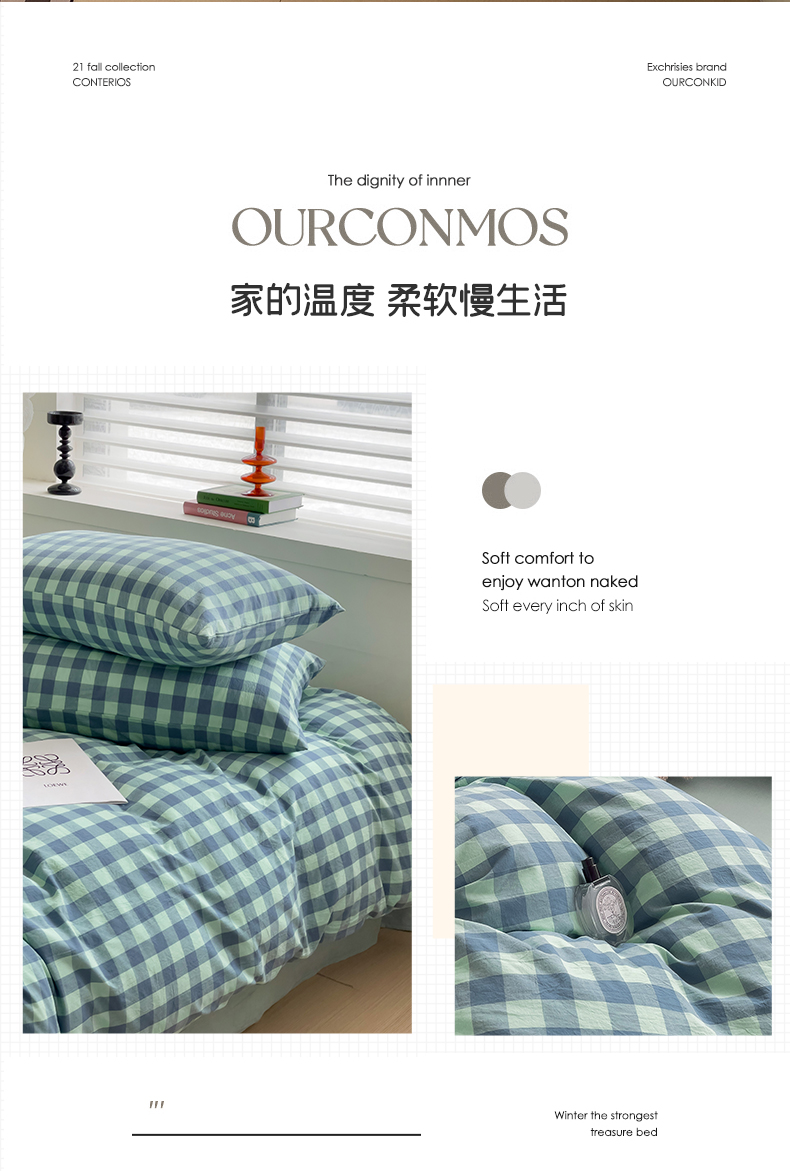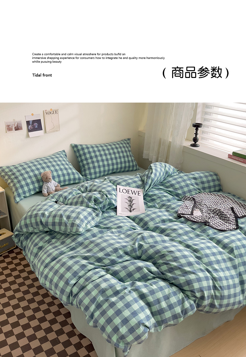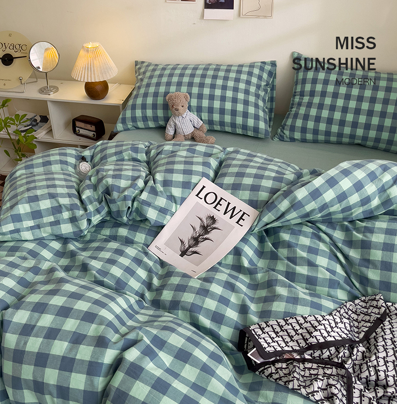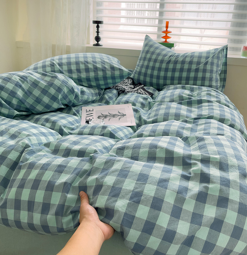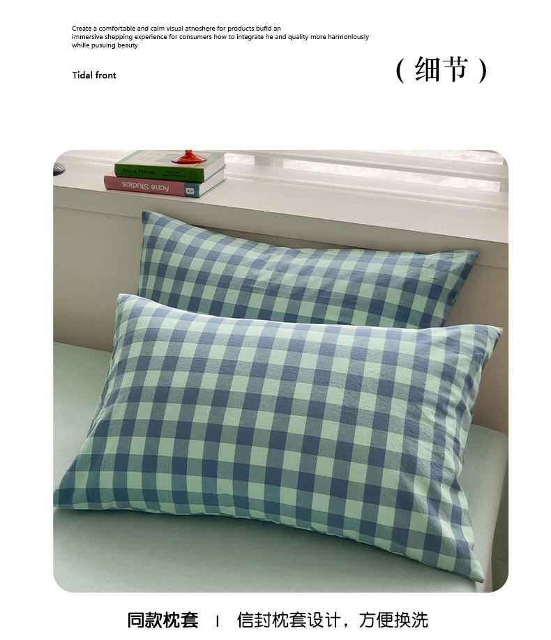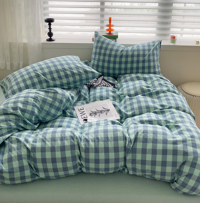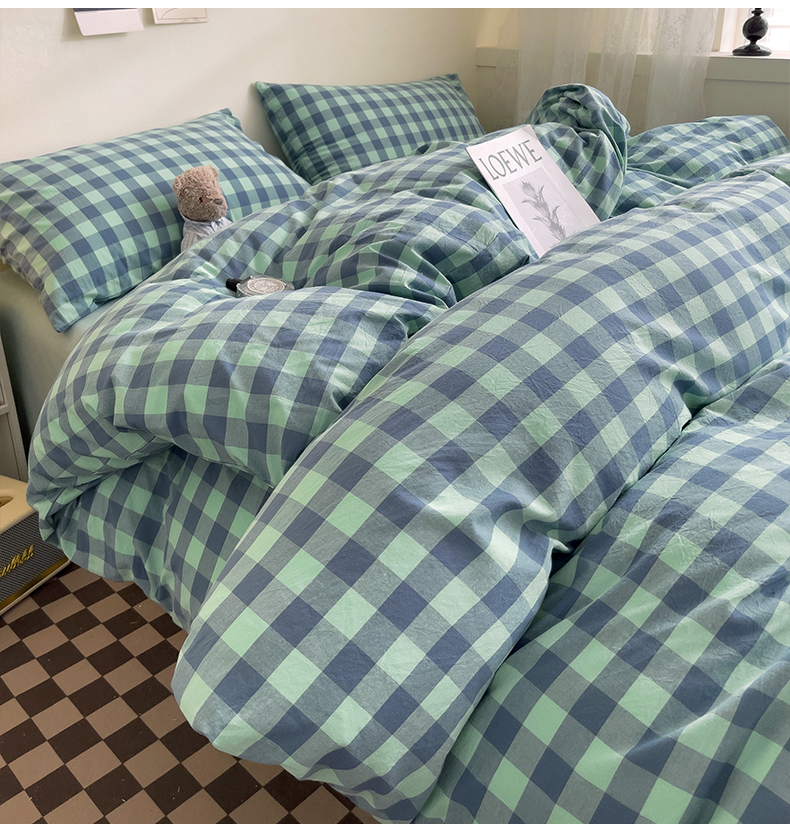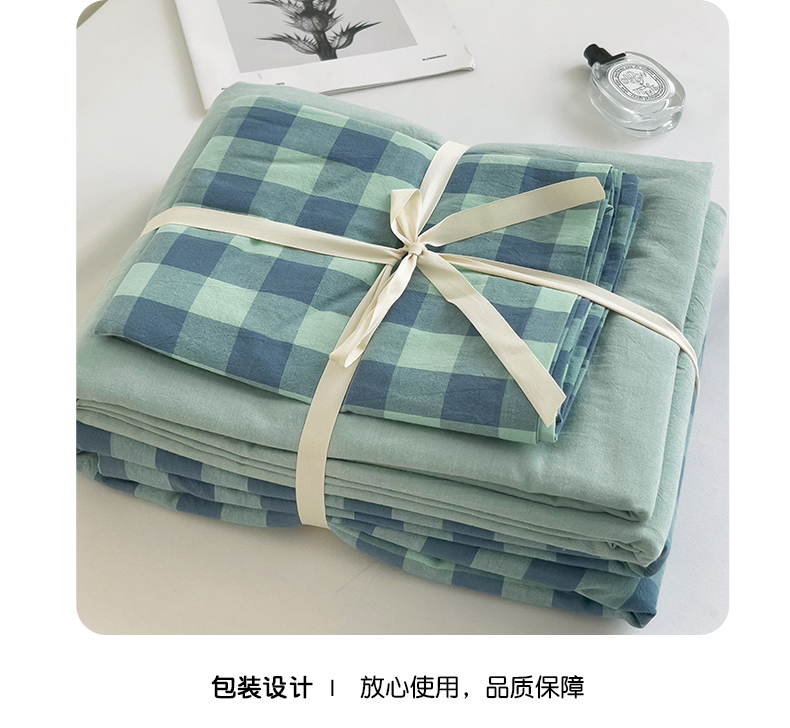 当前位置: 91家纺网 > 商品网购 > 床品套件 > 四件套 > 全棉普通四件套 > 大柏树 2025新款A类色织全棉水洗棉单品系列-四件套 绿灰小格