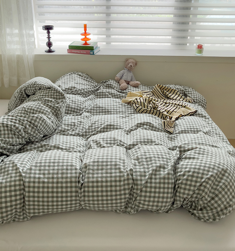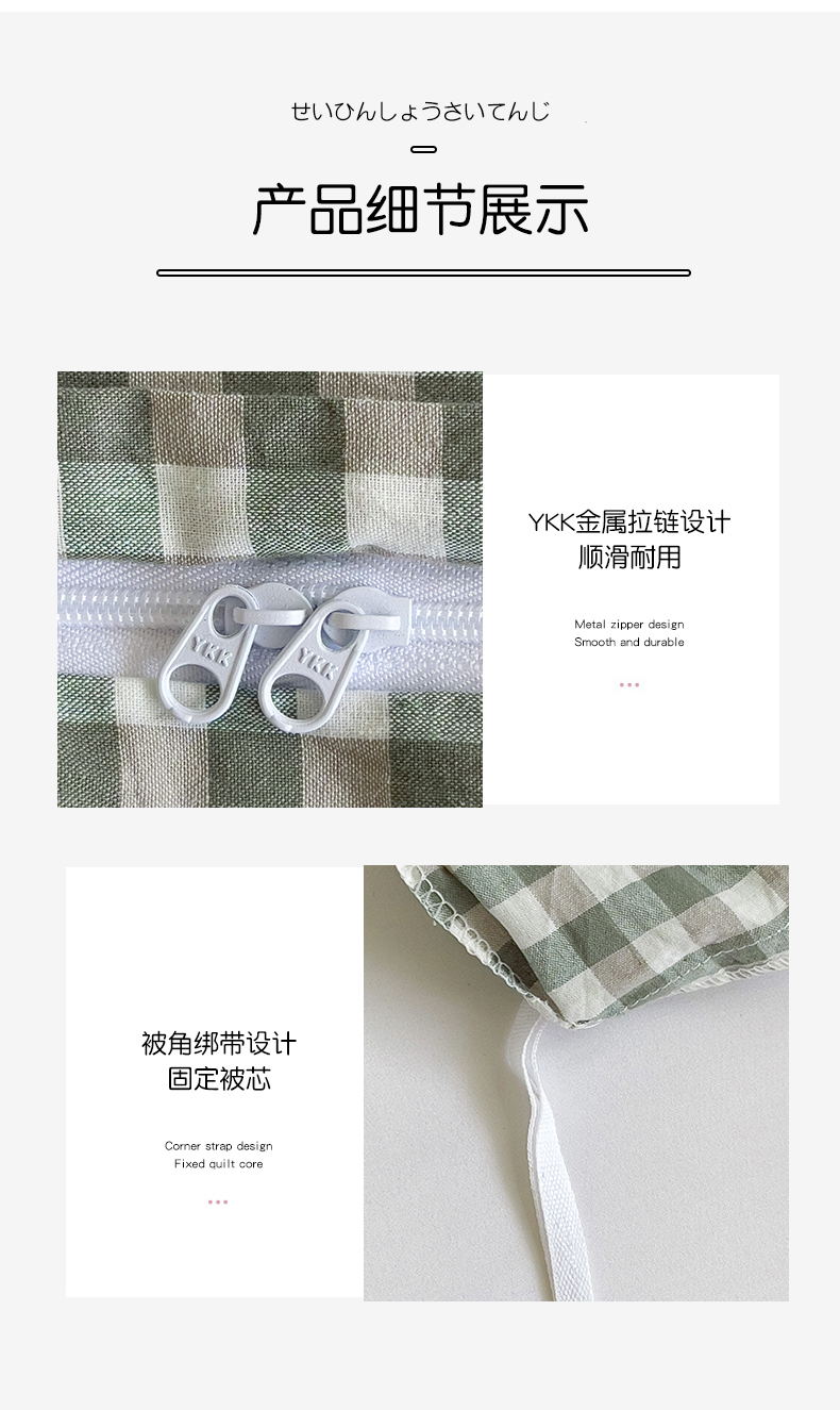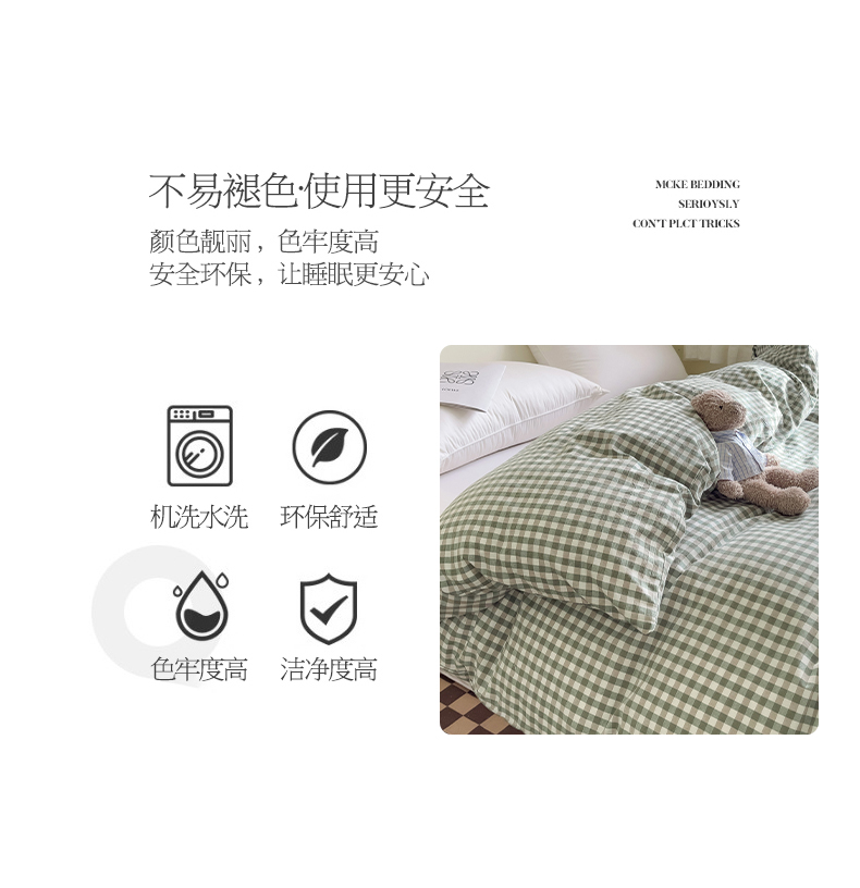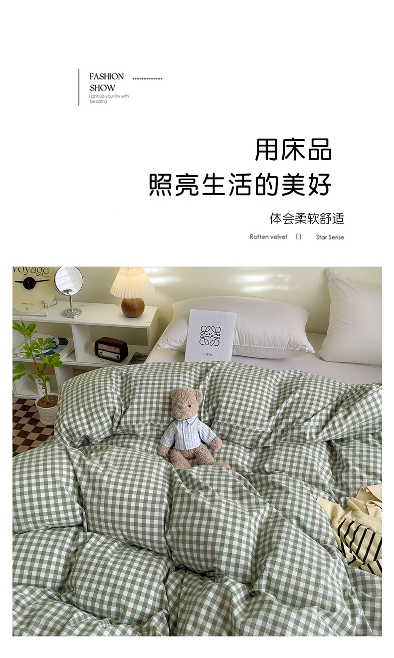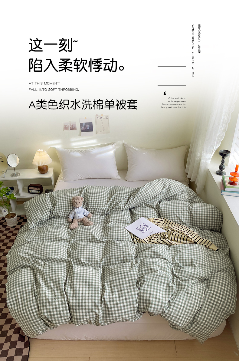 商品名称:大柏树 2025新款A类色织全棉水洗棉单品系列-单被套 绿小格