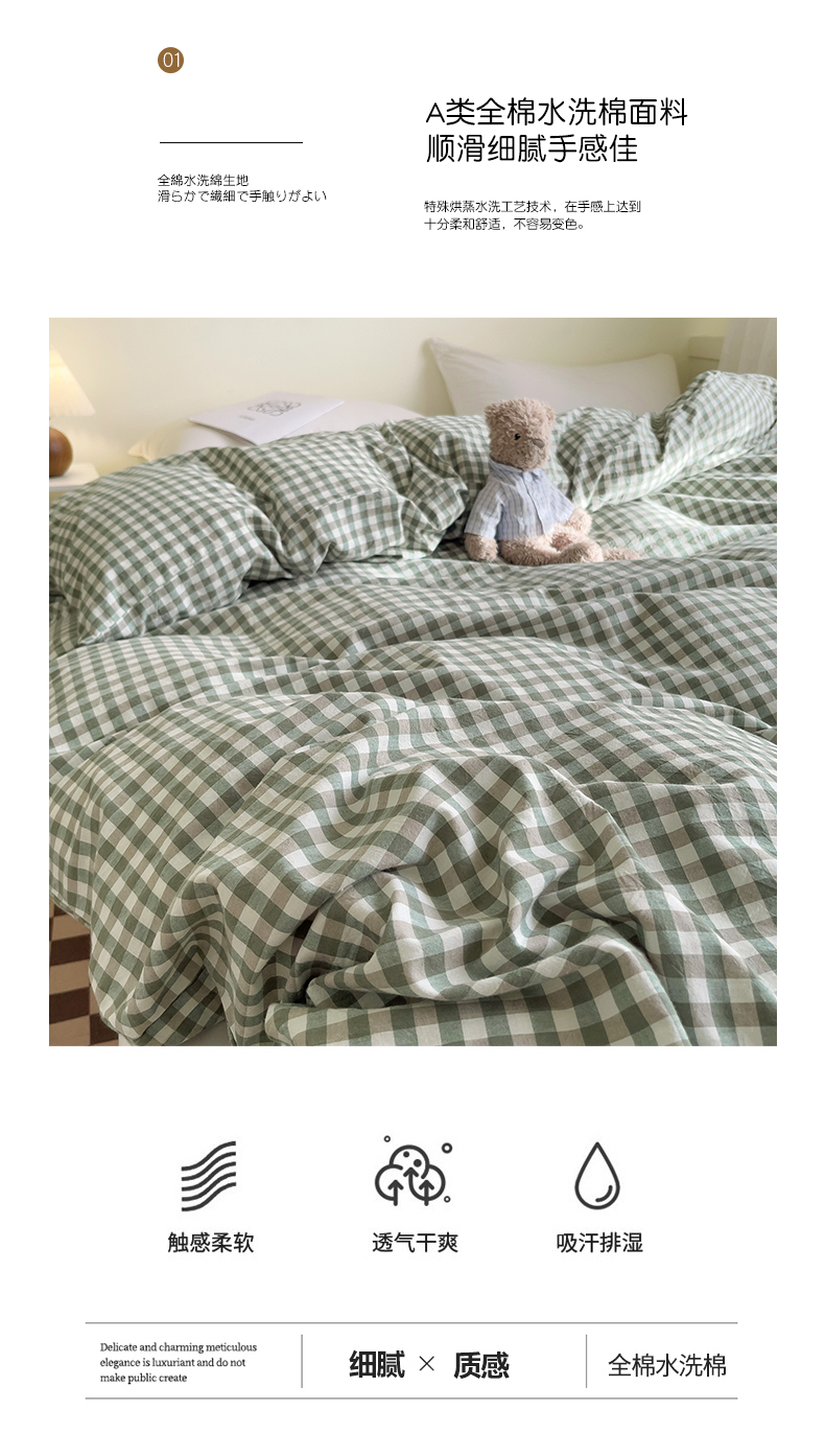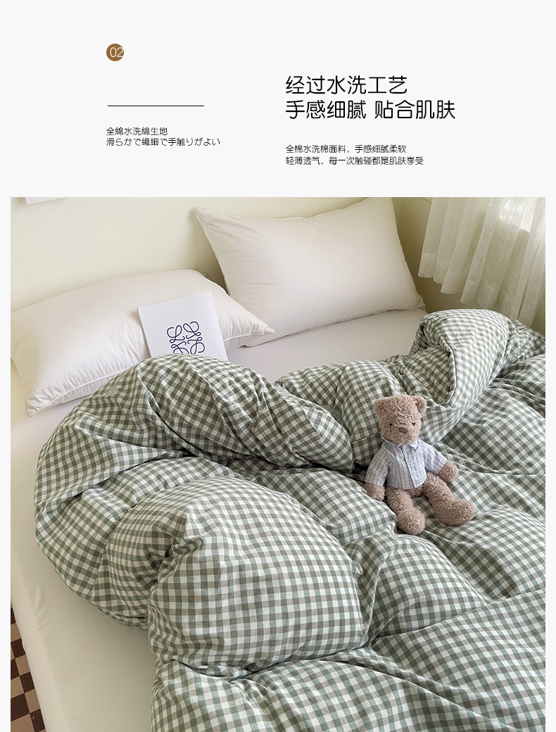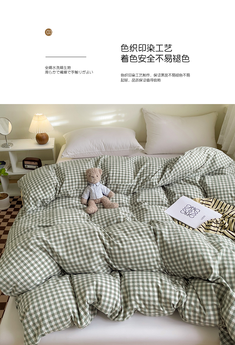 (总)大柏树 2025新款A类色织全棉水洗棉无印风四件套床单被套枕套,粉灰小格,黑白中格,黄粉三分格,灰细条,简兮兰,蓝大格,蓝黄三分格,蓝灰中格,蓝细条,流年灰,绿大格,绿灰小格,绿小格,米小格,牛油果大格,浅蓝小格,如意玉,森林桔,斯诺克,小冰激凌,英伦桔,英伦蓝,紫粉三分格,紫黄三分格