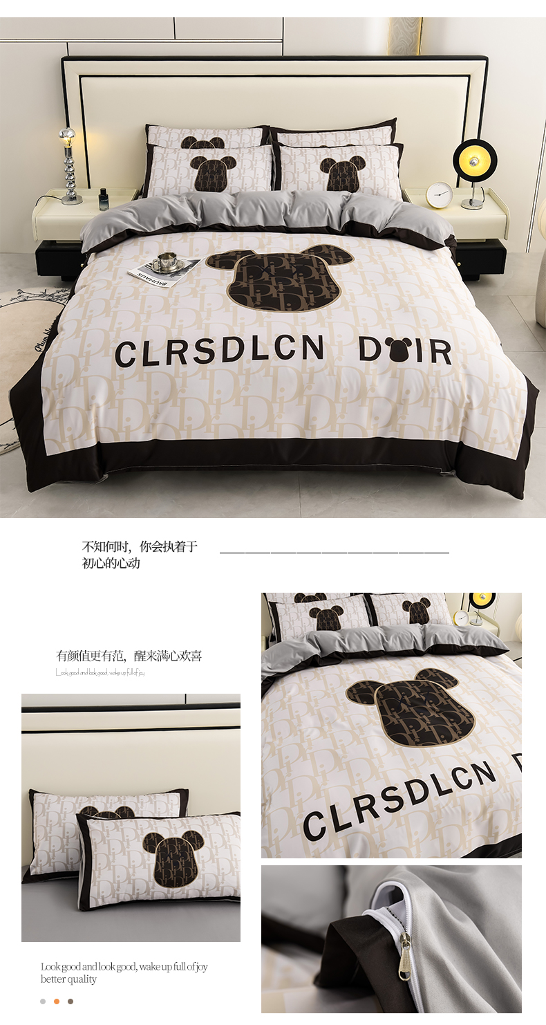 商品名称:色鬼布艺 2024新款大牌风擦边水洗真丝四件套 咖啡熊