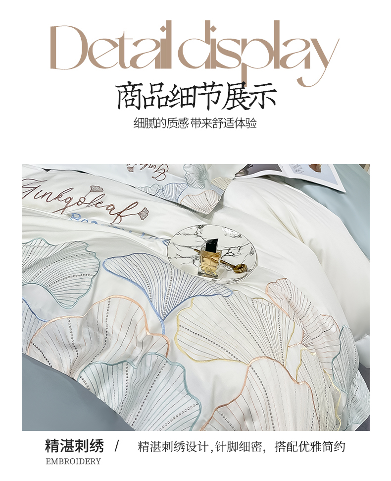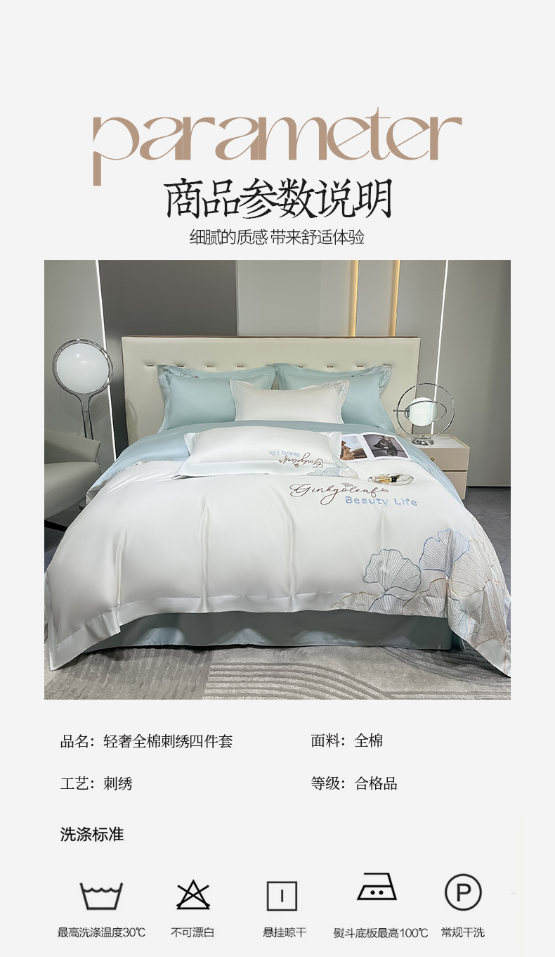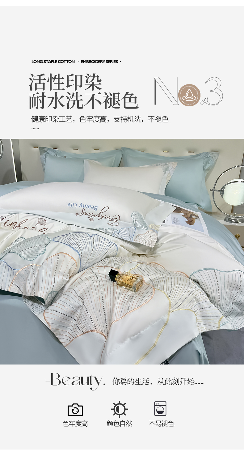 商品名称:家居1号家纺 2024新款轻奢双面100纯棉长绒棉刺绣四件套床单被套全棉床上用品直播热款-银杏花语 银杏花语-白+兰
