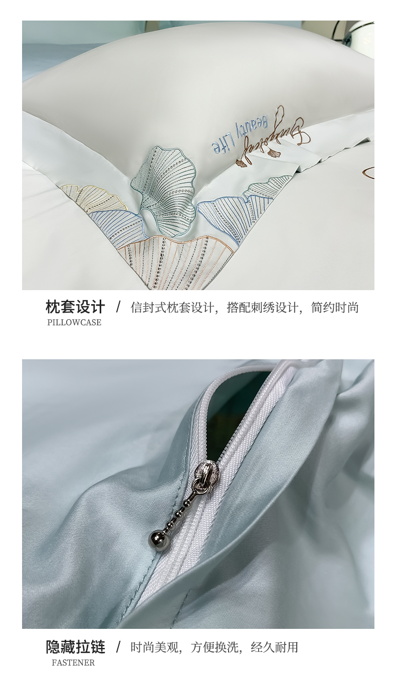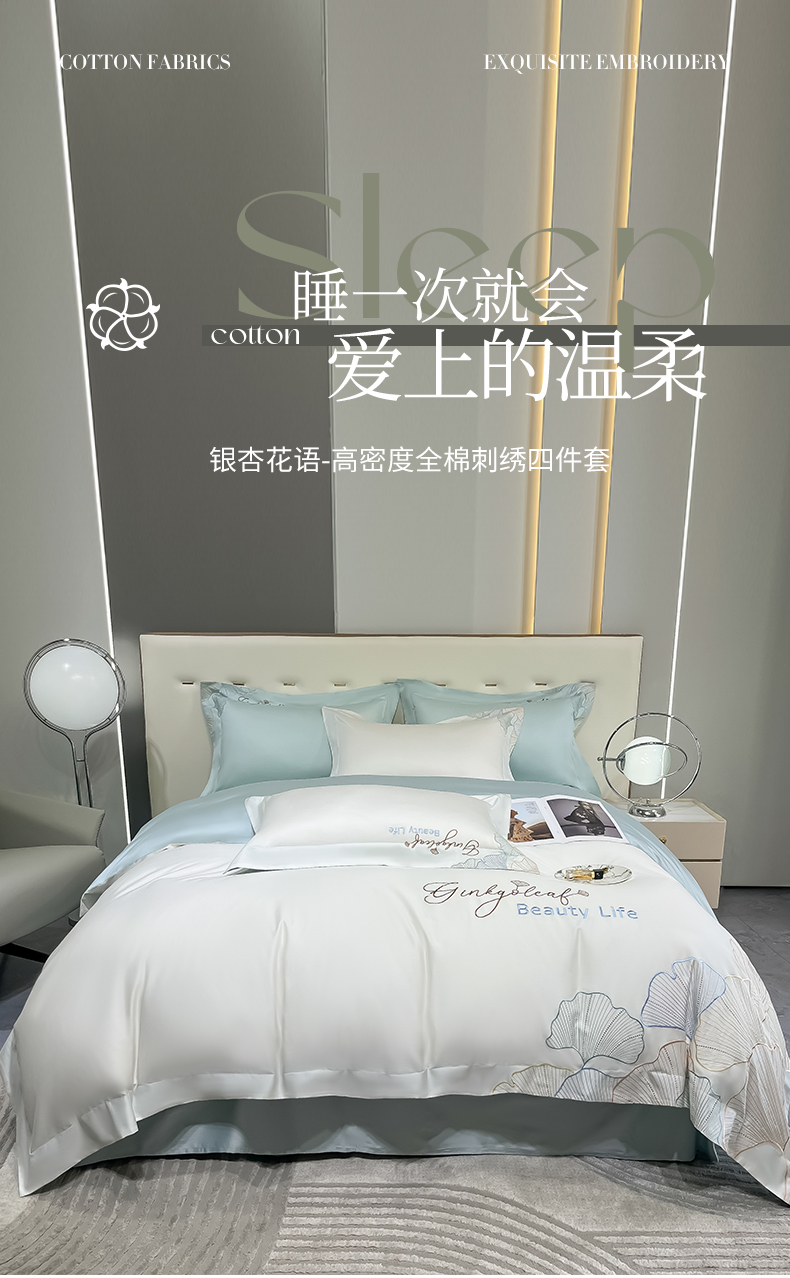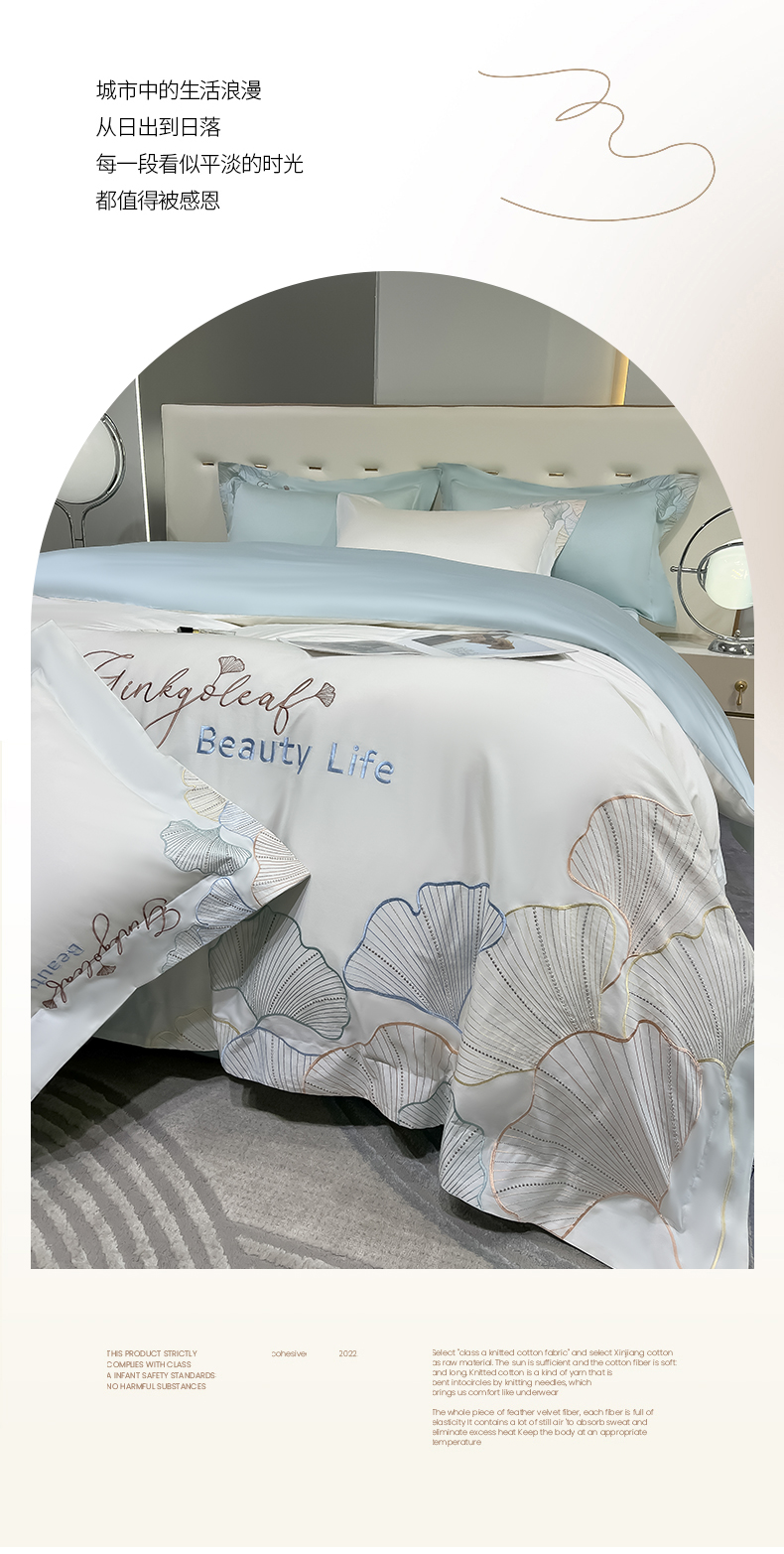 商品名称:家居1号家纺 2024新款轻奢双面100纯棉长绒棉刺绣四件套床单被套全棉床上用品直播热款-银杏花语 银杏花语-白+兰