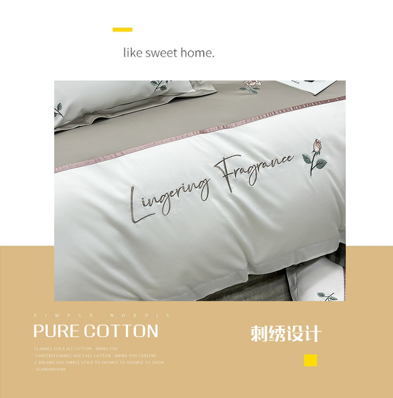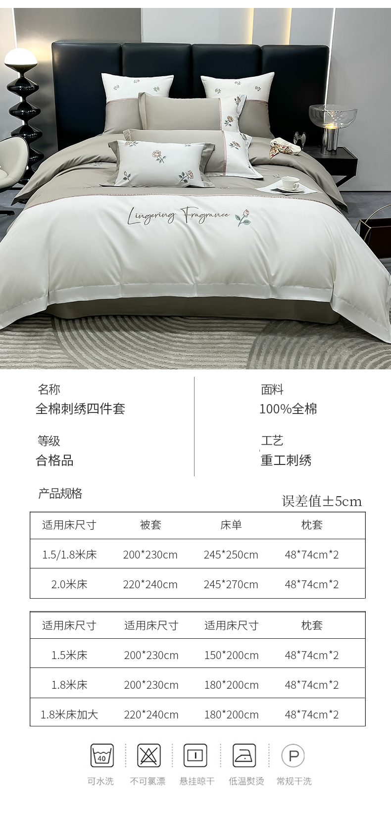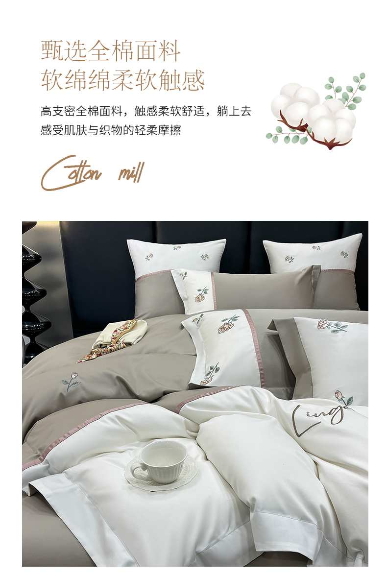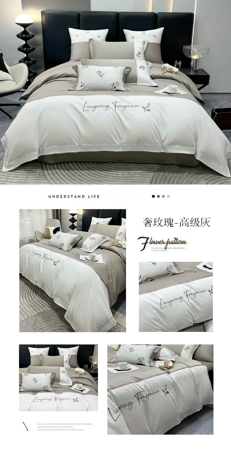 当前位置: 91家纺网 > 商品网购 > 床品套件 > 四件套 > 全棉普通四件套 > 家居1号家纺 2024新款13376全棉刺绣四件套-轻奢玫瑰 奢玫瑰-高级灰