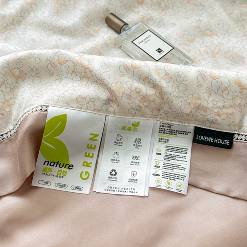 商品名称:若未2025新款法式莱赛尔天丝印花镂空夏被和夏被四件套 歌曼(桔)