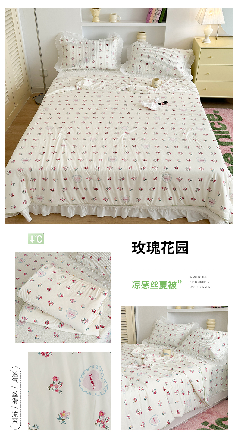 商品名称:昔可家纺 2024新款凉感冰皮床盖和同款夏被 玫瑰花园
