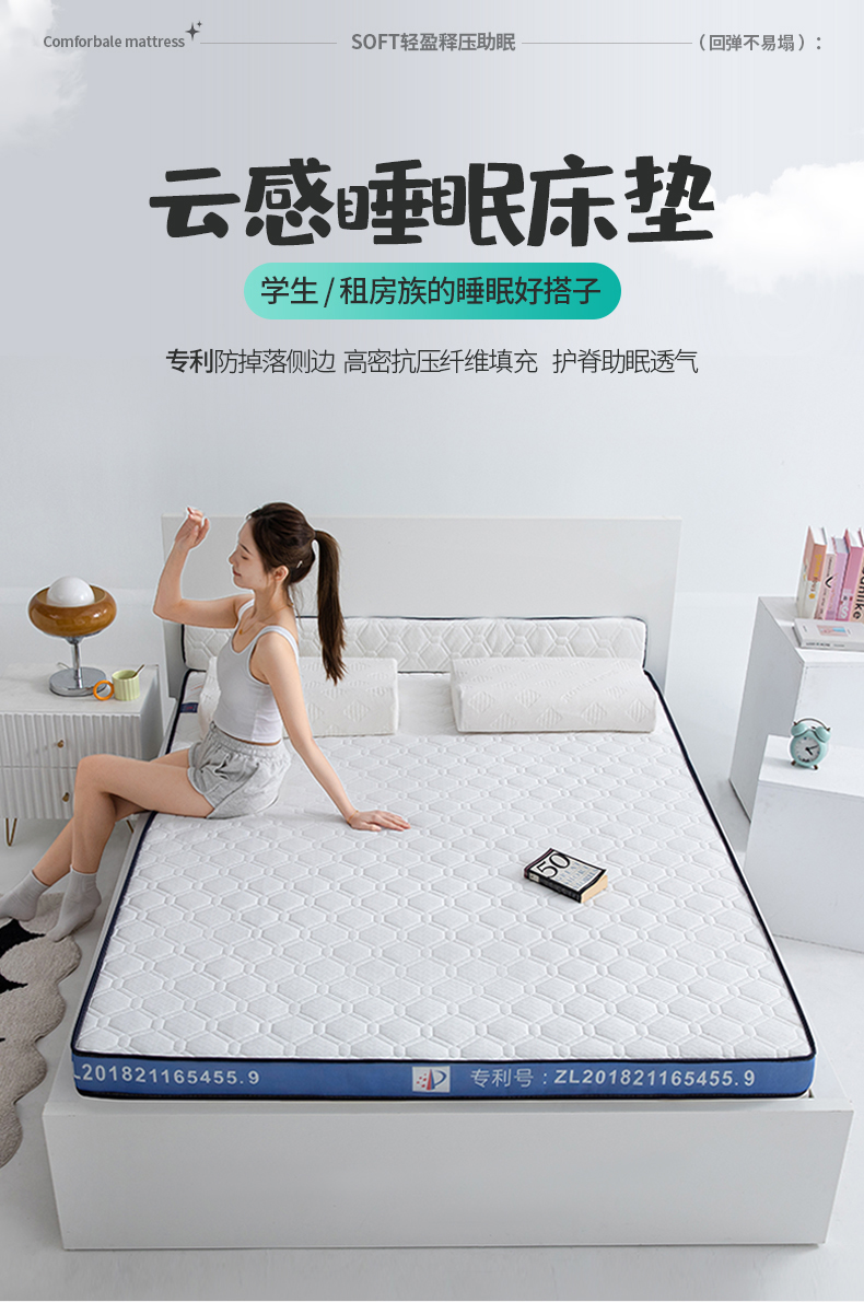 当前位置: 91家纺网 > 商品网购 > 床垫/床褥 > 普通床垫 > 学生派2024新款云感睡眠床垫记忆棉床垫系列-成人款 白色5公分