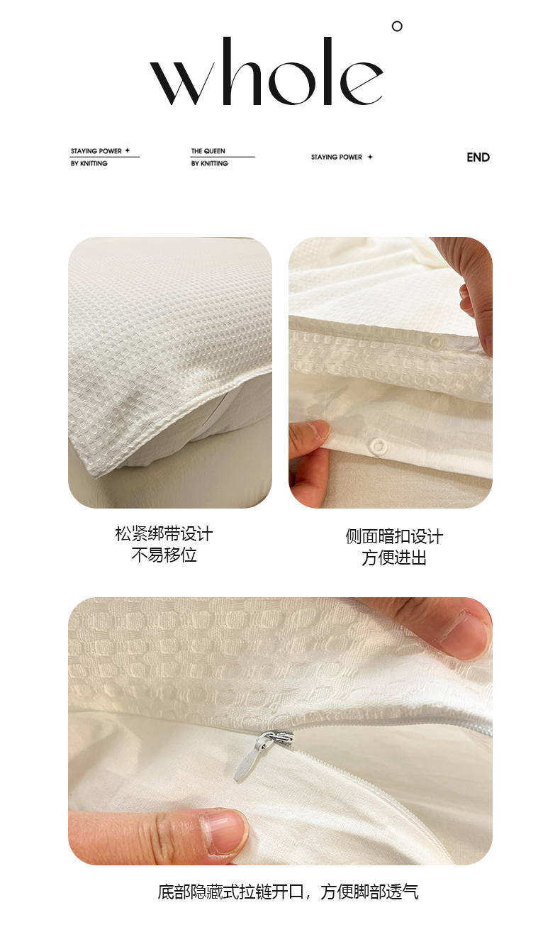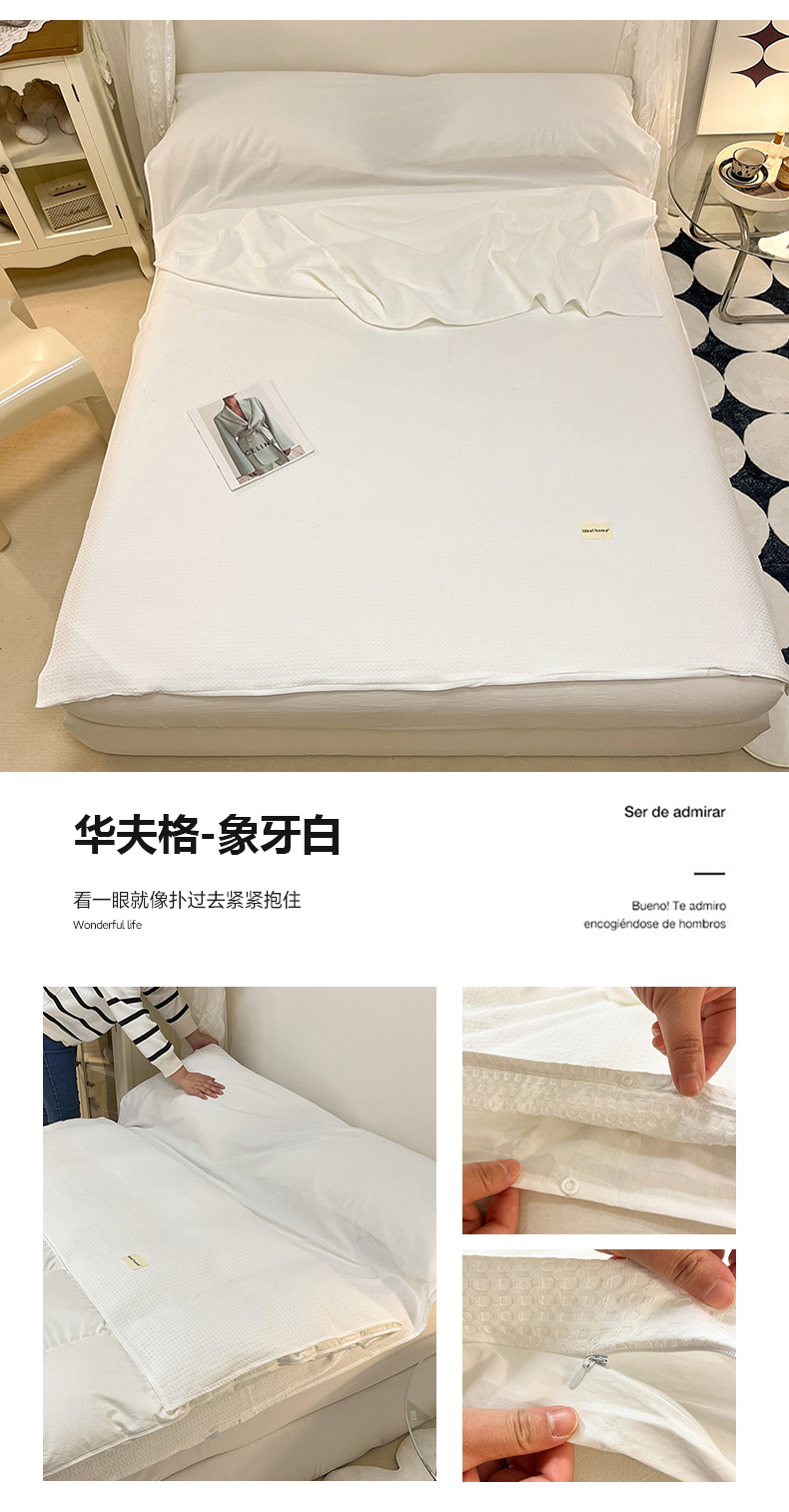 商品名称:沐辰 2024新款睡袋全棉A类华夫格睡袋 华夫格-象牙白