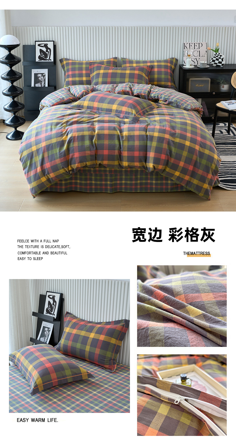 当前位置: 91家纺网 > 商品网购 > 床品套件 > 四件套 > 水洗棉四件套 > 三沁家居 2024新款格子色织全棉水洗棉四件套 宽边 彩格灰