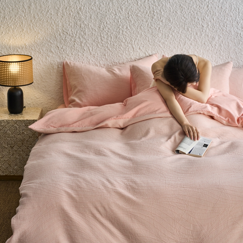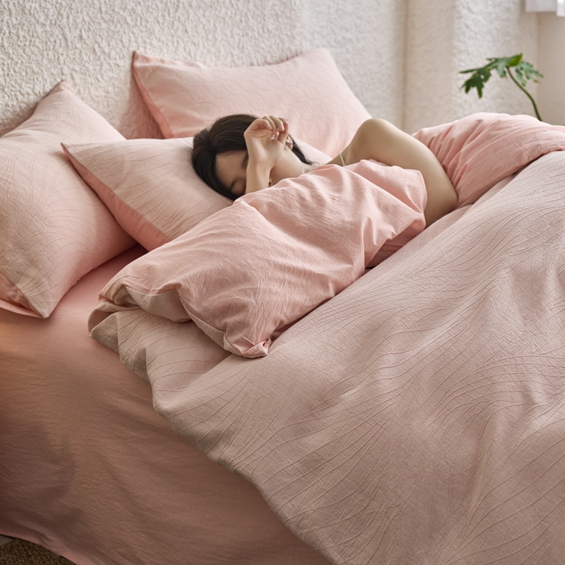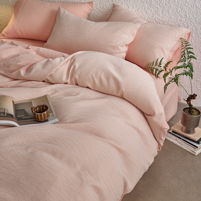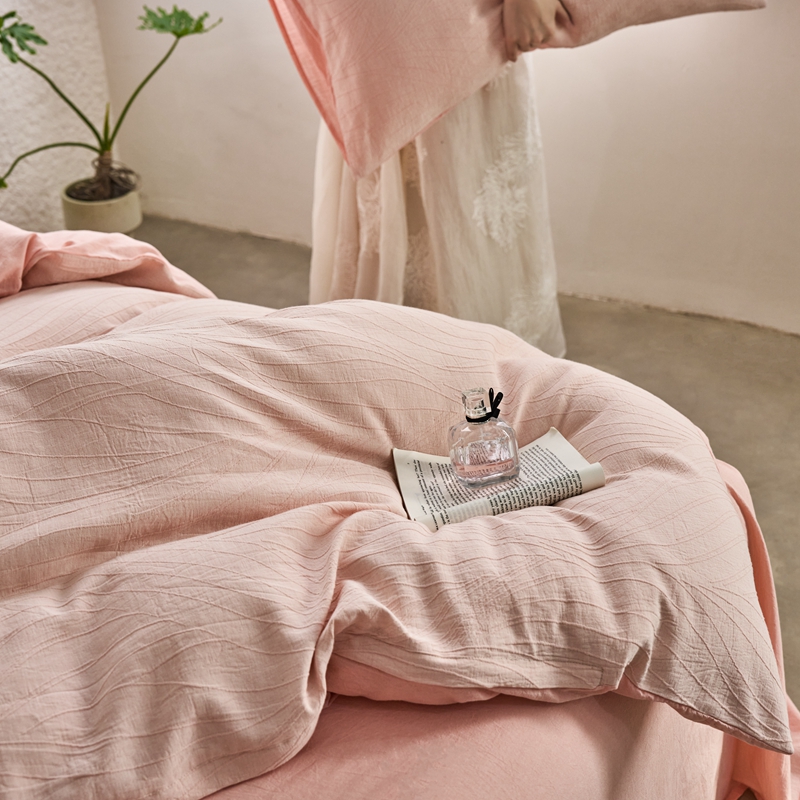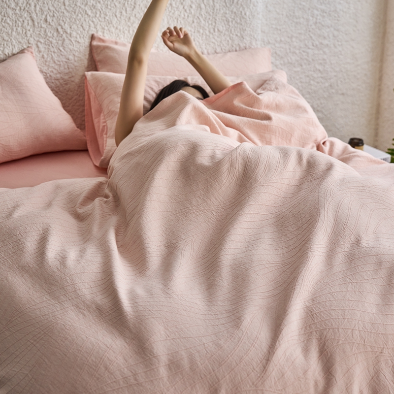 商品名称:安莱生活 2025新款双层纱色织提花波浪系列四件套 乱纹波浪 乱纹波浪-嫩粉