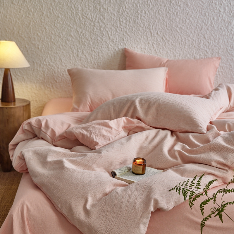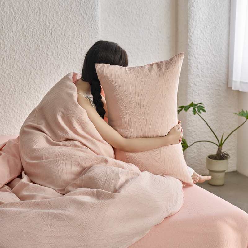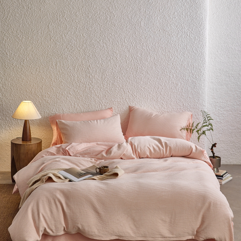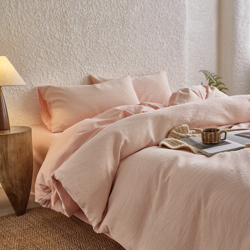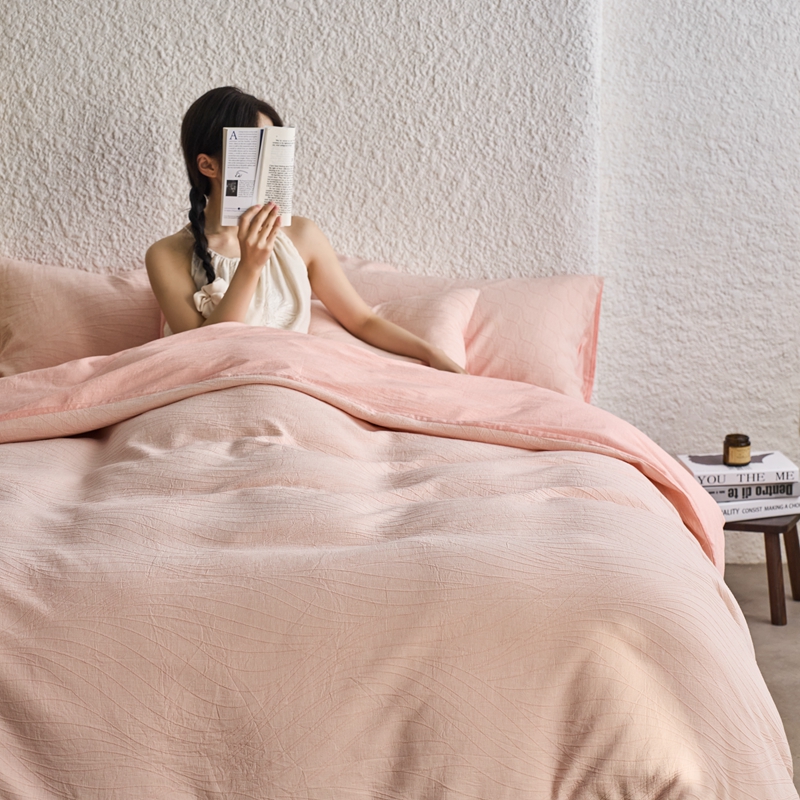 商品名称:安莱生活 2025新款双层纱色织提花波浪系列四件套 乱纹波浪 乱纹波浪-嫩粉