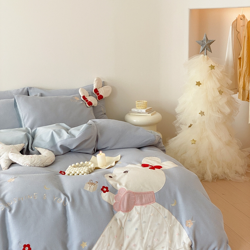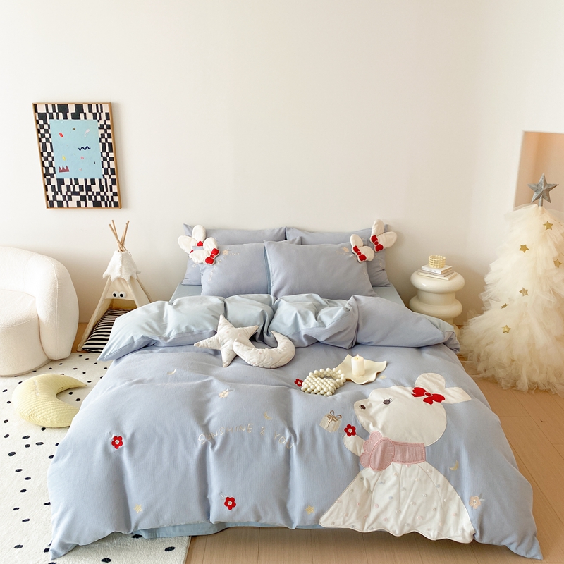 (总)朗莎家纺 2021新款贴布绣牛奶绒四件套,悠悠熊,唐老鸭