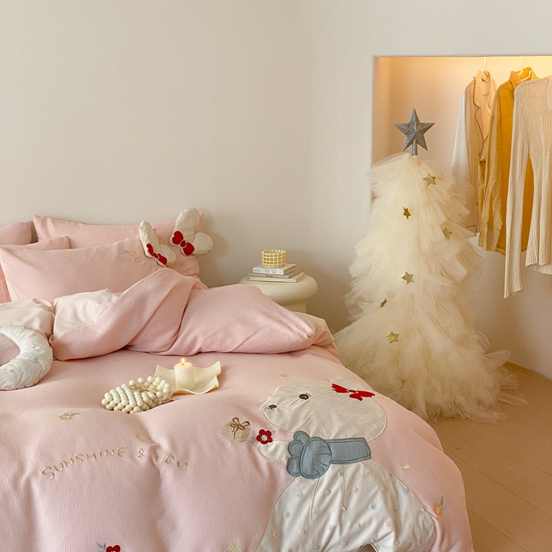 (总)朗莎 2024新款40S水洗棉四件套,爱心米奇,粉猪猪