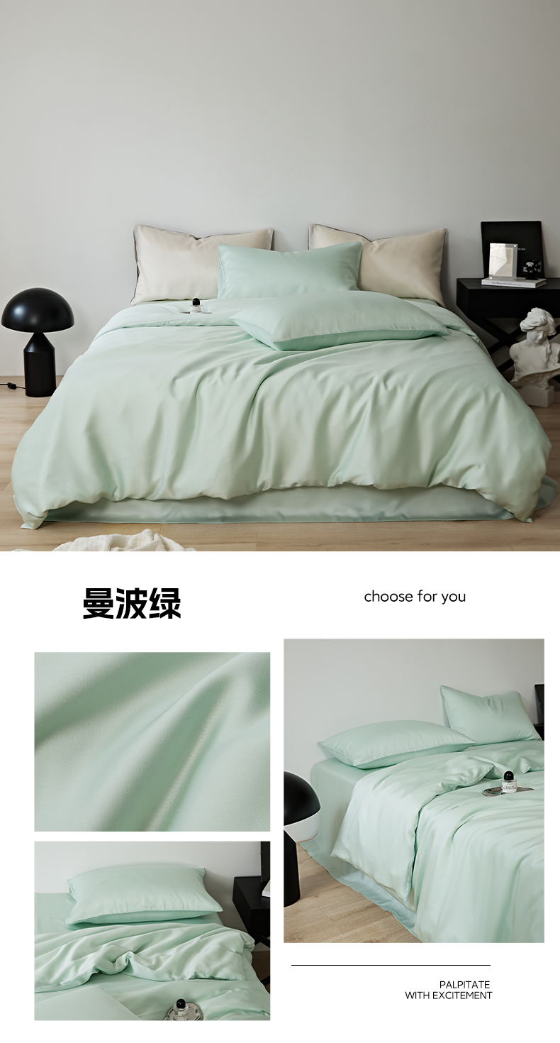当前位置: 91家纺网 > 商品网购 > 床品套件 > 四件套 > 莱赛尔四件套 > EH 2024新款初夏LF60支天丝双拼色四件套系列 曼波绿