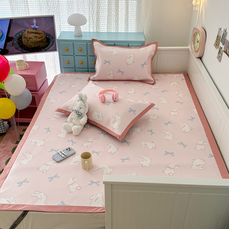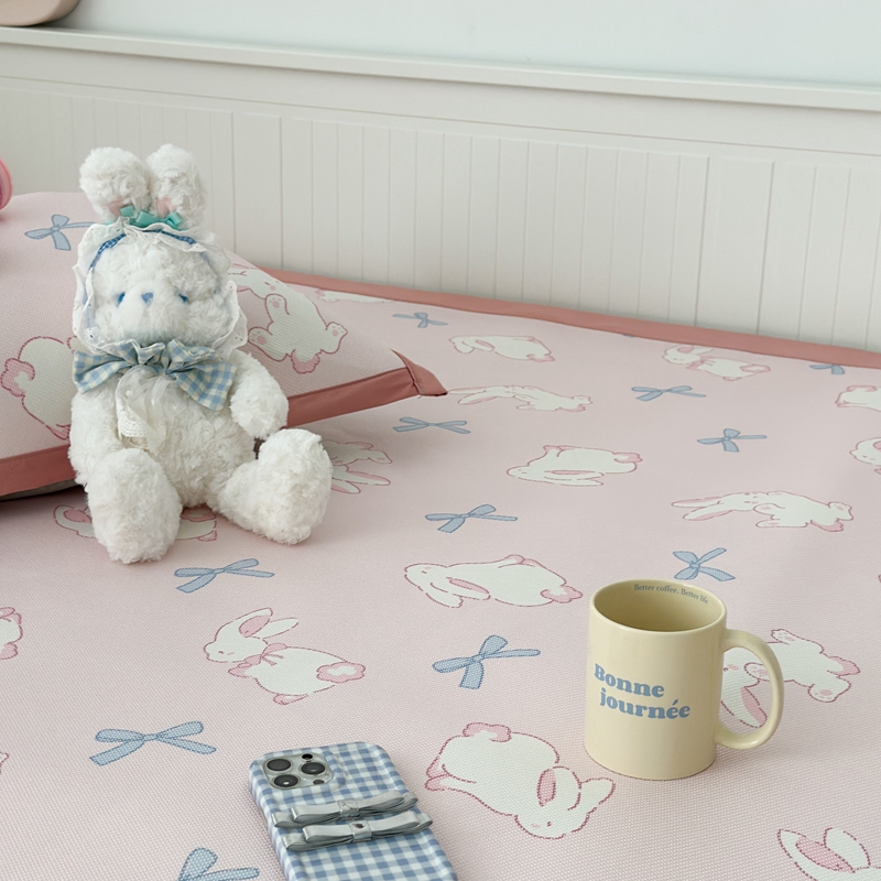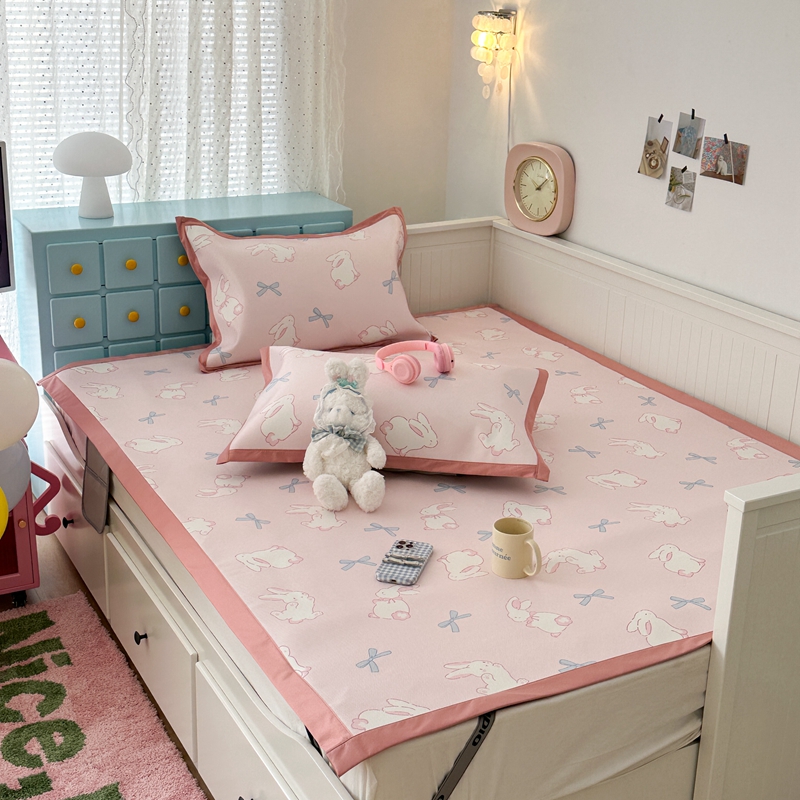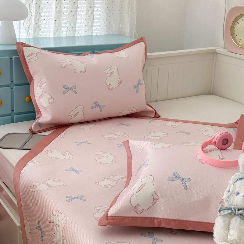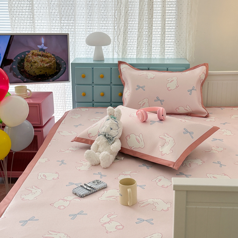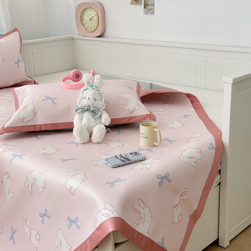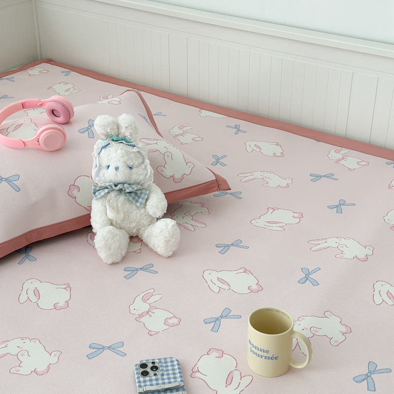 昔可家纺 2024新款高端数码印花养生冰藤席--卡通系列 蝴蝶结小兔