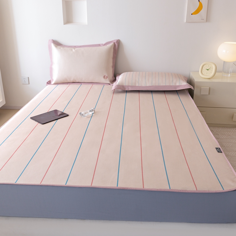 本希家居 2024新款小清新刺绣系列高端可水洗冰丝席 甜甜圈床笠