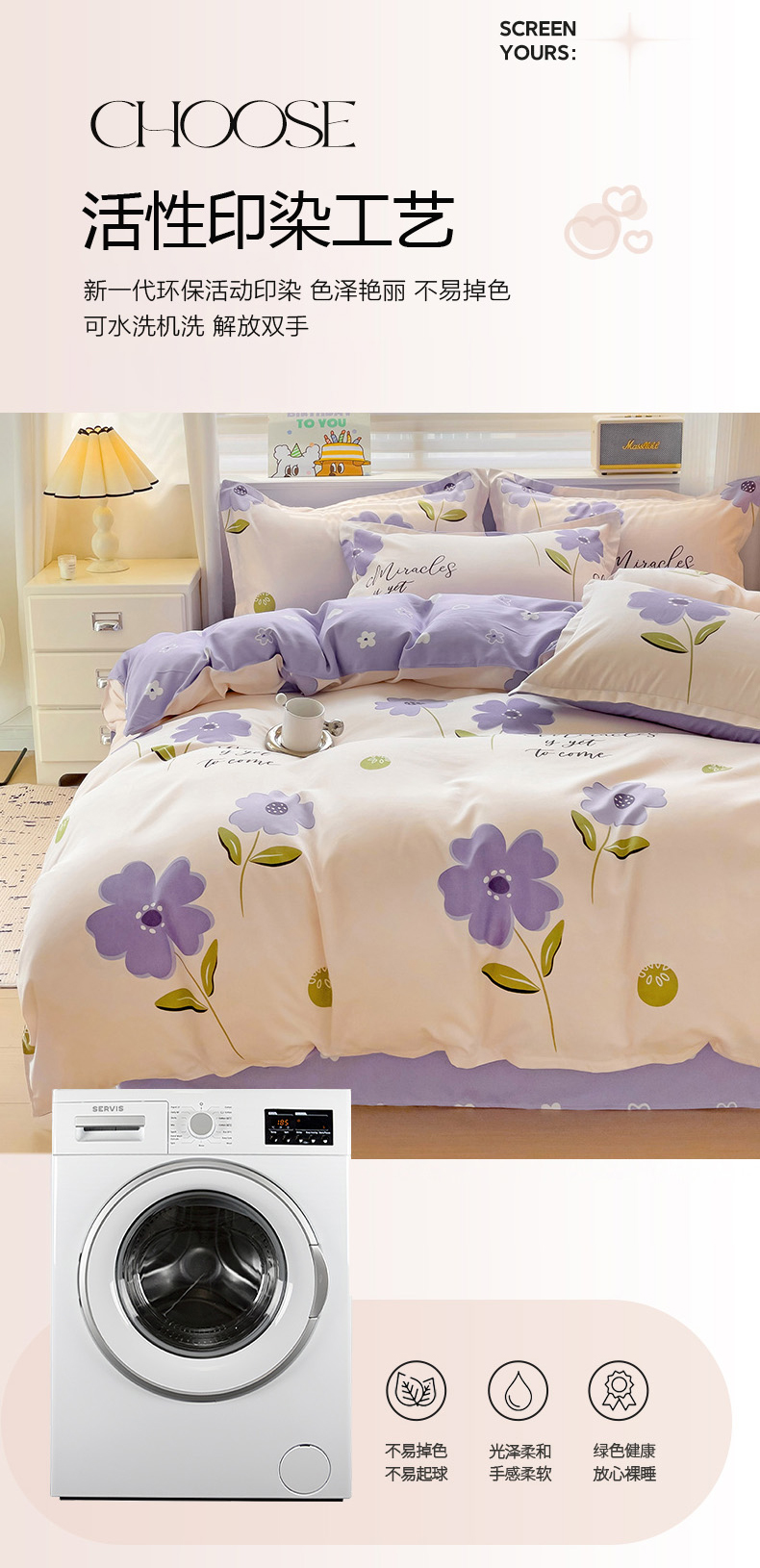 优逸家纺 2025新款植物羊绒小清新斜纹磨毛四件套,派对日记