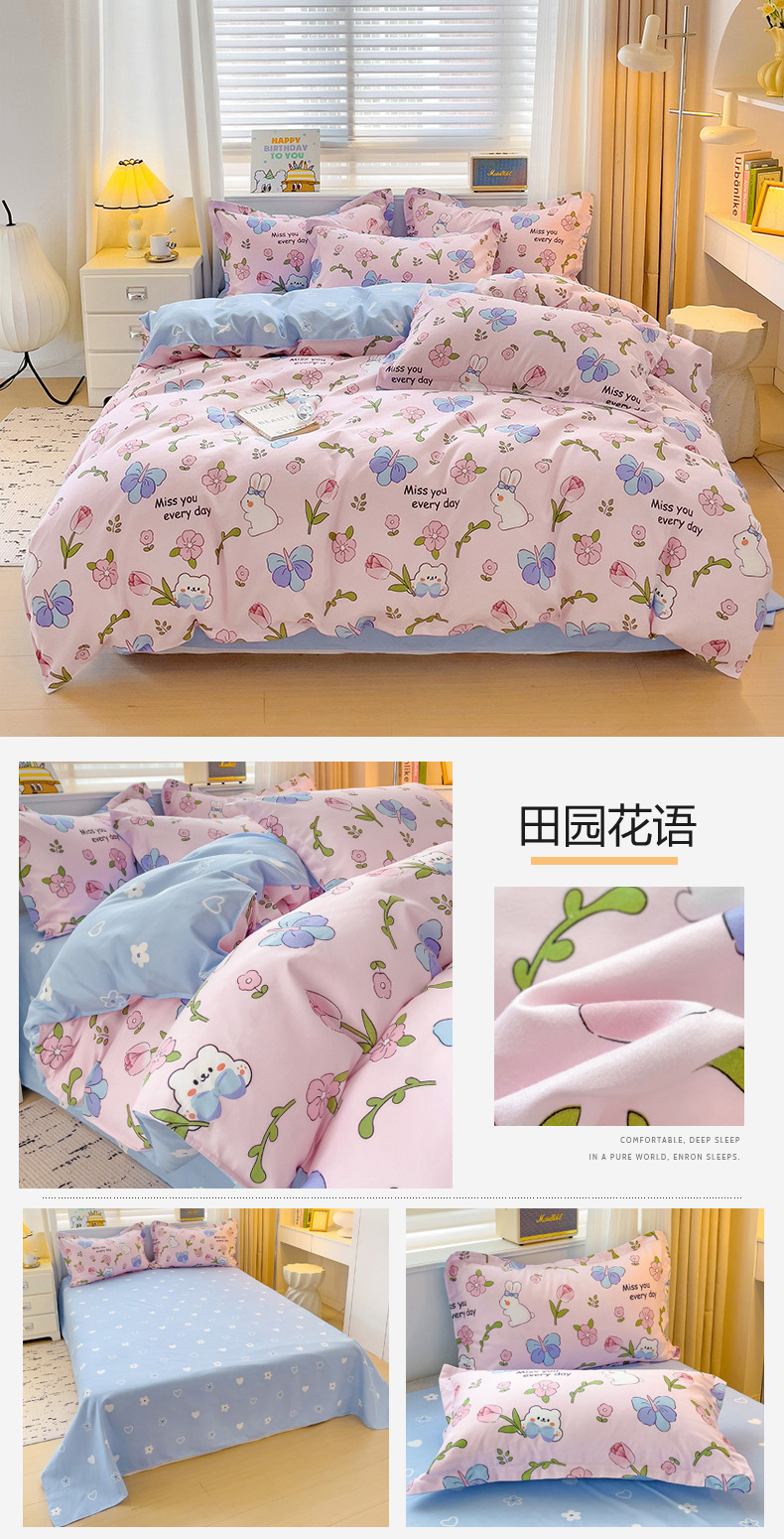 (总)优逸家纺 2025新款植物羊绒小清新斜纹磨毛四件套,彩格,彩虹云,草莓嘟嘟,潮派,初恋,春晓,春晓-紫,丛林恐龙,大耳狗,菲菲兔,花丛兔,花海,花浅,极简生活,蓝图,蜜桃兔,摩卡熊,沐浴春风-粉,沐浴春风-蓝,皮皮狗,青苹果,热恋,硕果,丝带小兔,岁月静好,田园花语,甜心小熊,向阳花开,小时光,心心念念,学院日记,银杏叶,英伦时尚,郁金香-紫,白月光,贝贝熊,晨光,复古南枝,欢乐狗,简格,绿林,莫奈花园,晴朗,薰衣浪漫,阳春三月,自由空间,春风里,花田小熊,卡皮巴拉,可可库米,米洛咖,暖意花开,派对日记,清风入梦,晴天,山茶花桔,绅士灰,童年,汪汪队,香叶流年,小狗宝莉,至青春