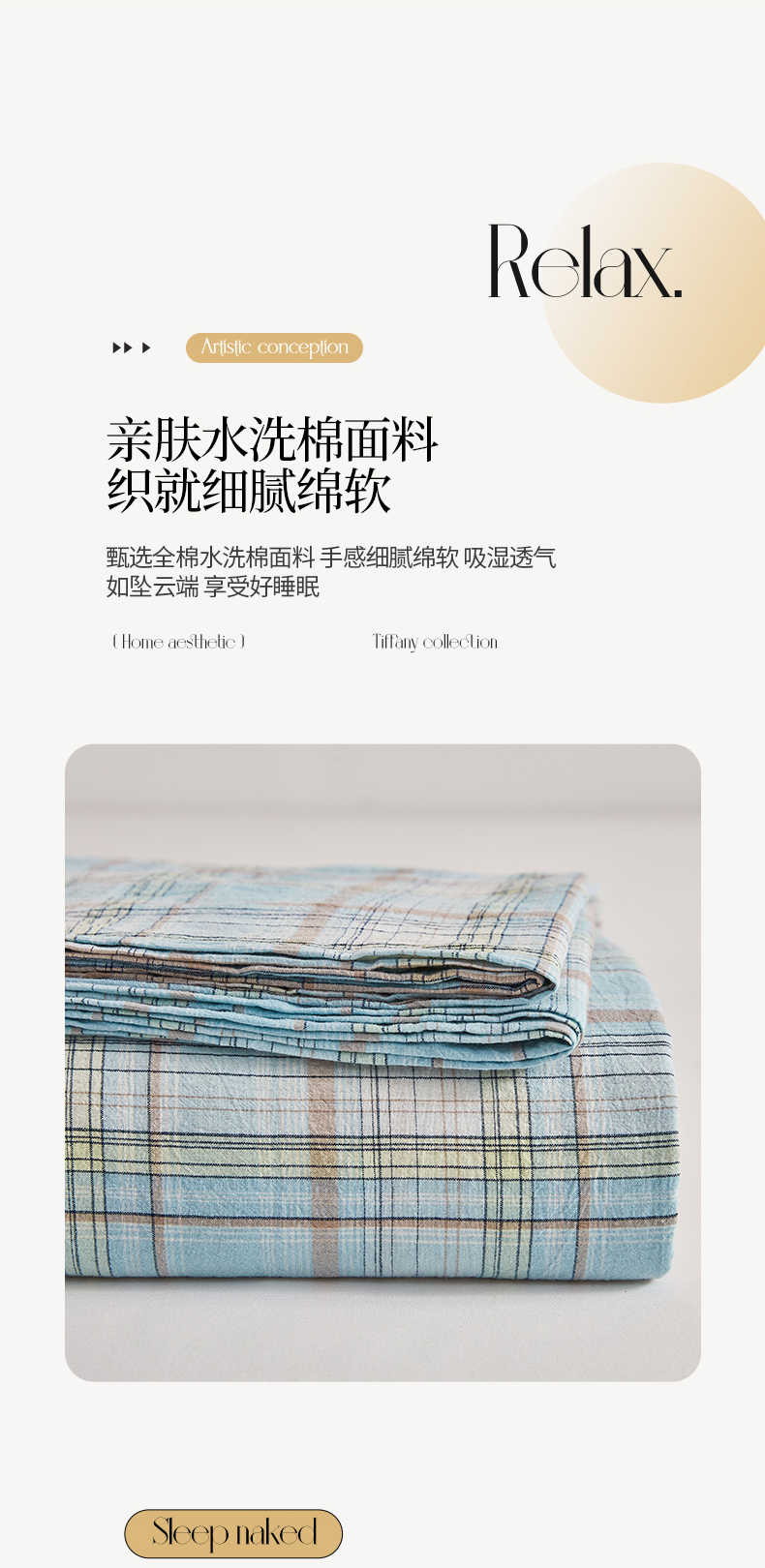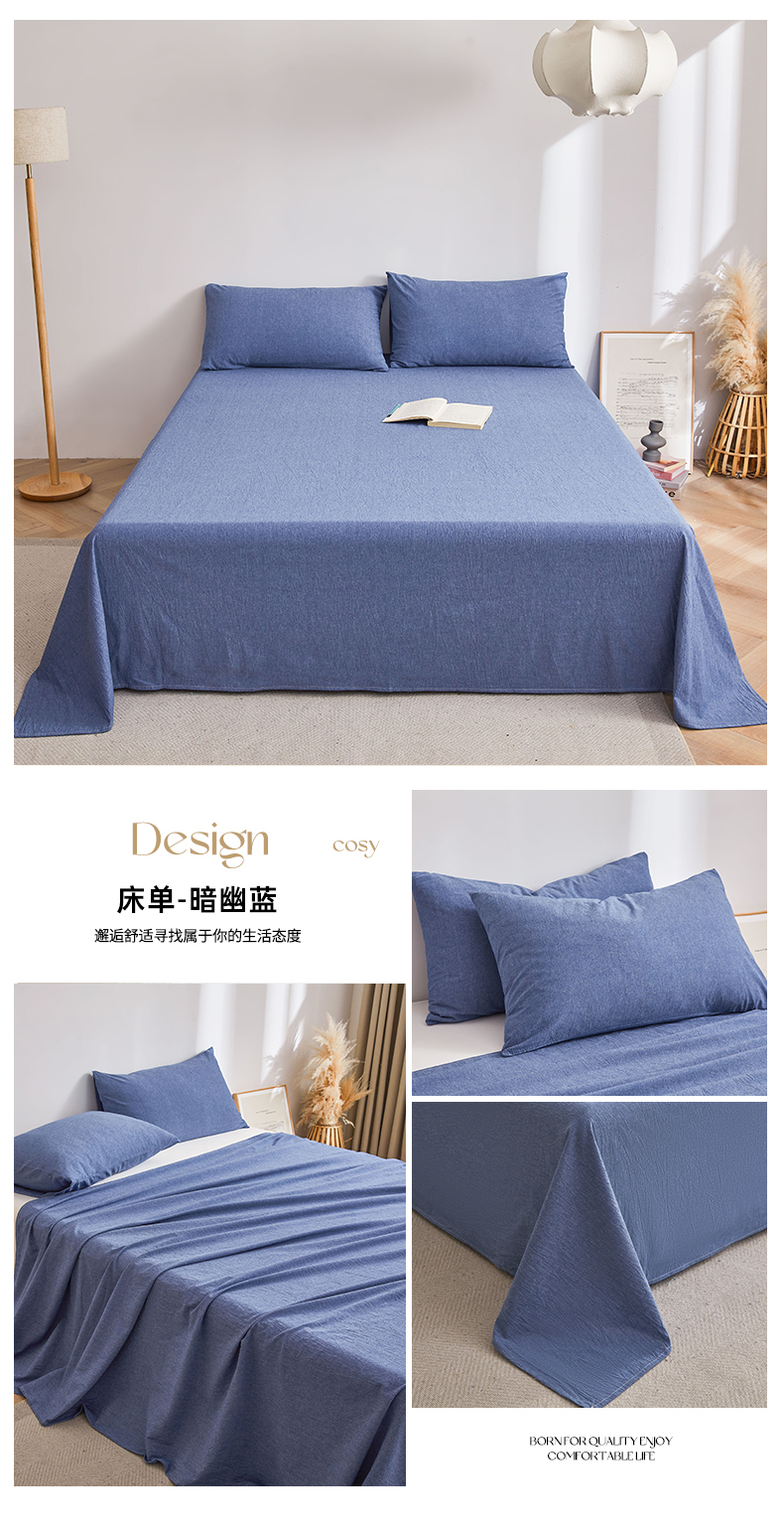 雅萱家纺 2024新款雅萱-色织全棉水洗棉床单 床单-未央-蓝