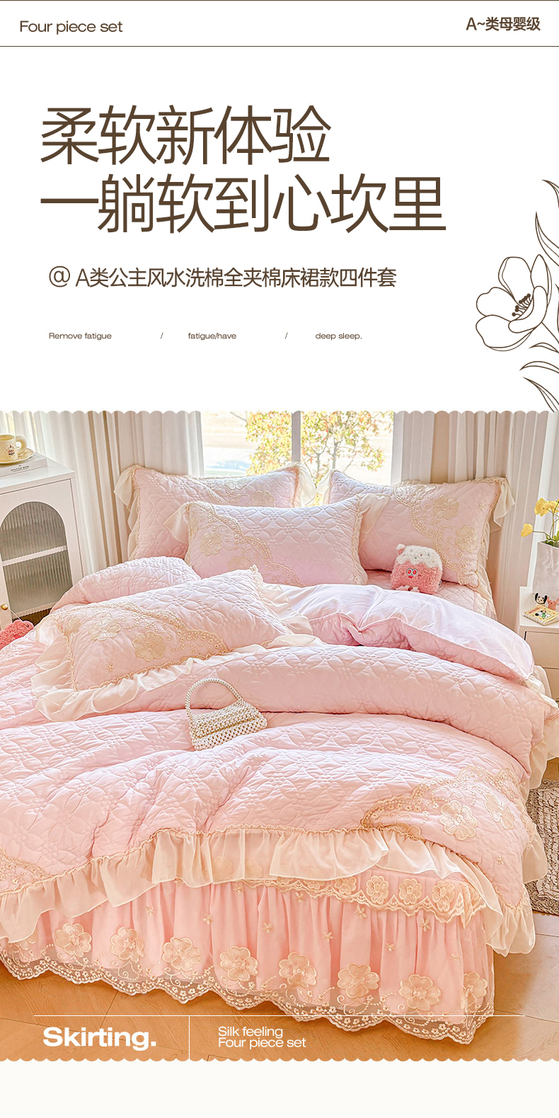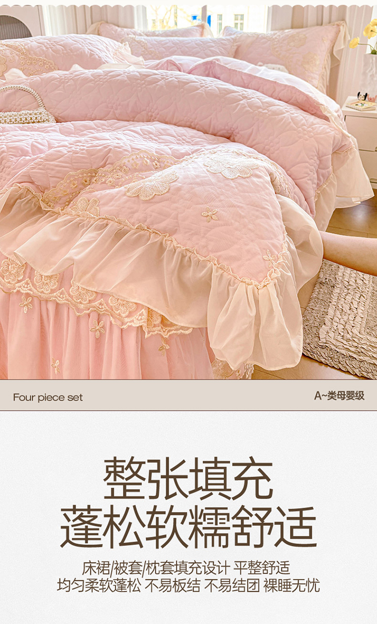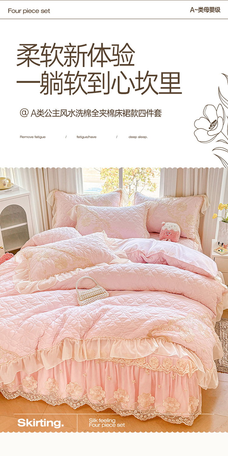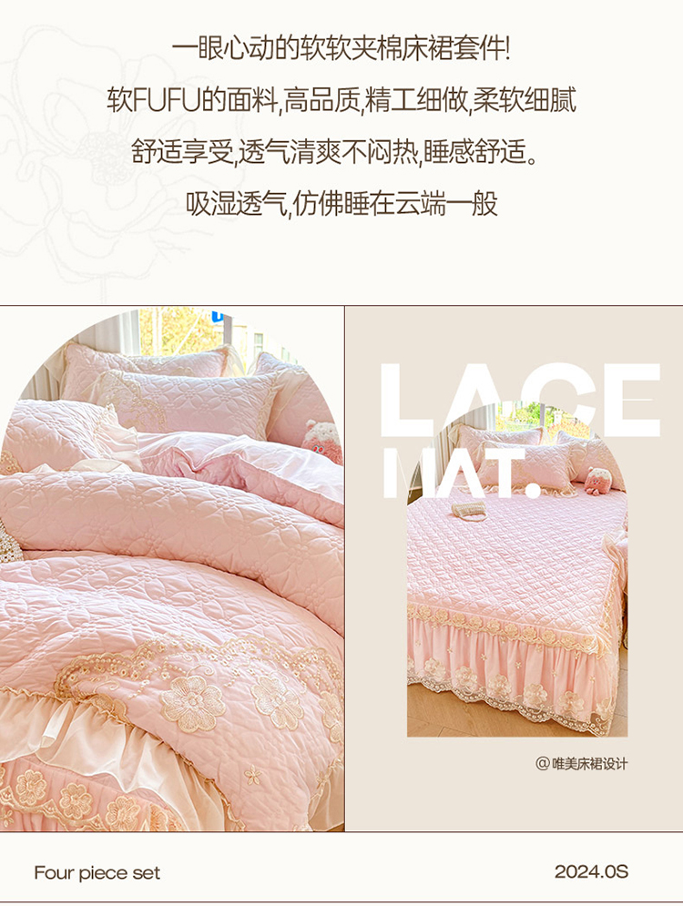 当前位置: 91家纺网 > 商品网购 > 床品套件 > 四件套 > 其它四件套 > 罗艺轩 2024新款公主风水洗棉夹棉床裙款四件套-浪漫满屋床 浪漫满屋-少女粉