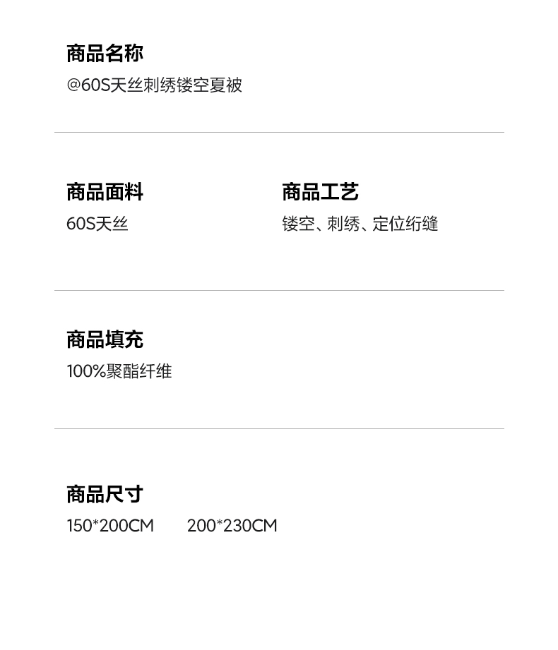 商品名称:(总)歌历斯家纺 2024新款亲肤舒适60S天丝简约款夏被