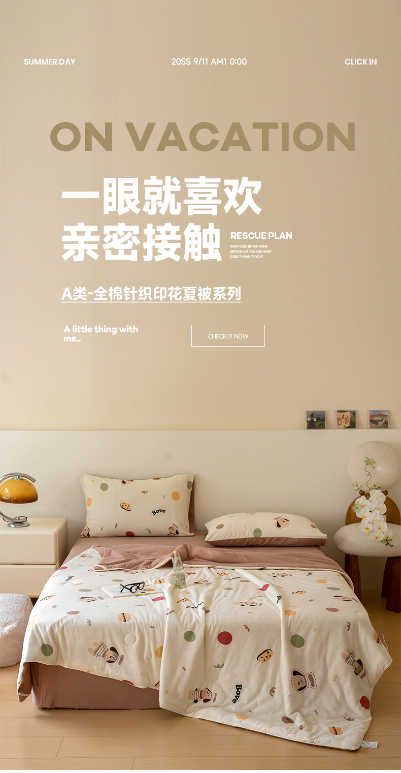 • 91家纺网 家纺一手货源 找家纺 华超针织 2024新款全棉针织印花夏被 夏被面包狗