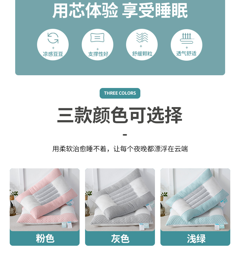 当前位置: 91家纺网 > 商品网购 > 枕头/枕芯/保健枕/颈椎枕 > 普通枕芯 > 梦叶草 2024新款凉感丝凉豆豆决明子枕芯A版凉感丝B版全棉决明子护颈枕头 凉豆豆决明子枕-浅绿