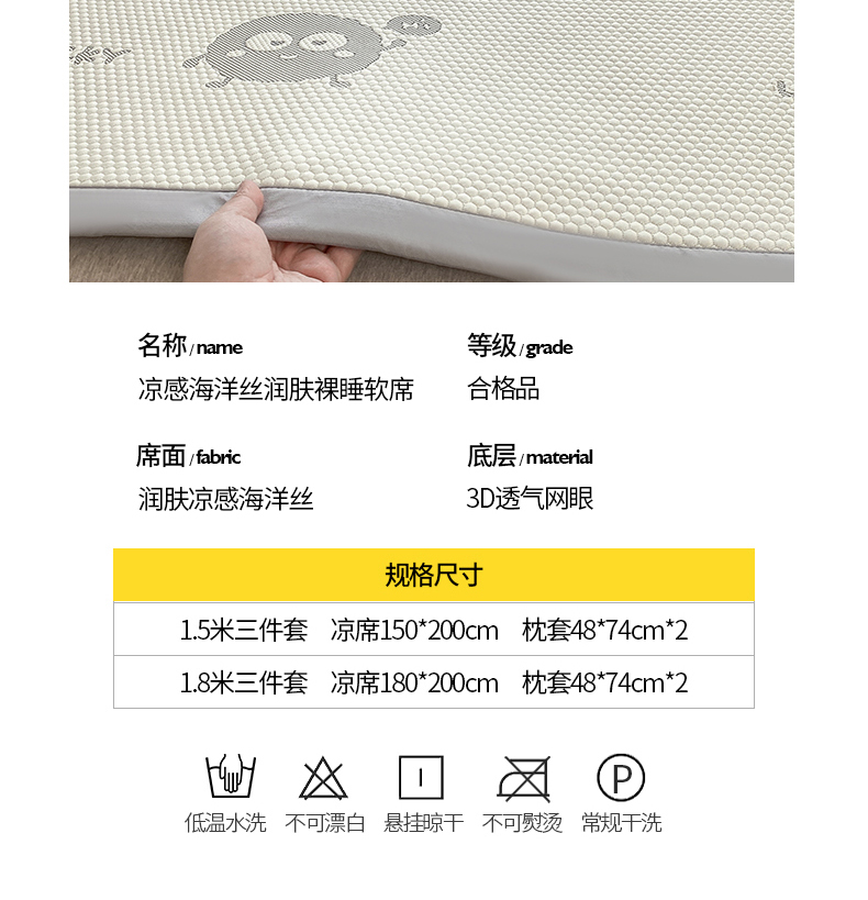 商品名称:典冠 2024新款A类乙伦凉感PE凉席海洋丝裸睡软席三件套 煤球灰