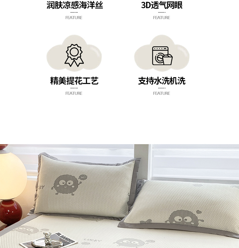 (总)典冠 PE乙纶冰豆豆床笠凉席,爱心熊,格子纹,花朵蓝,花朵绿,开心灰,猫咪灰,煤球灰,煤球蓝,咩咩蓝,浅夏绿,浅夏玉,熊猫灰