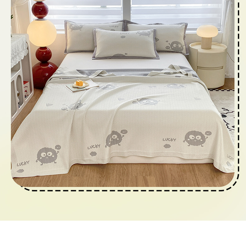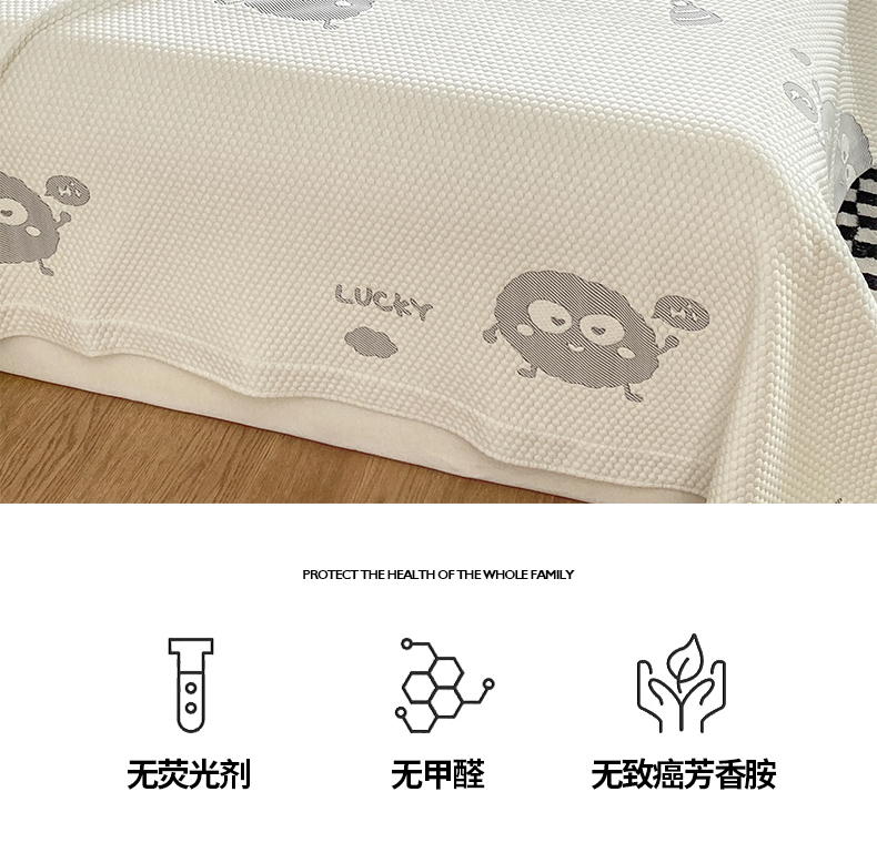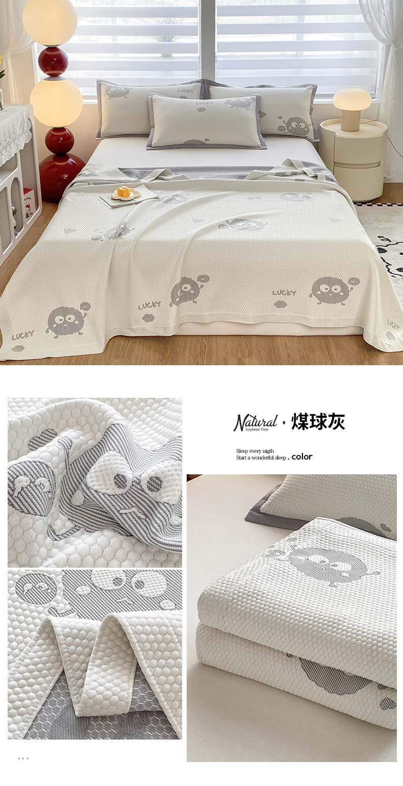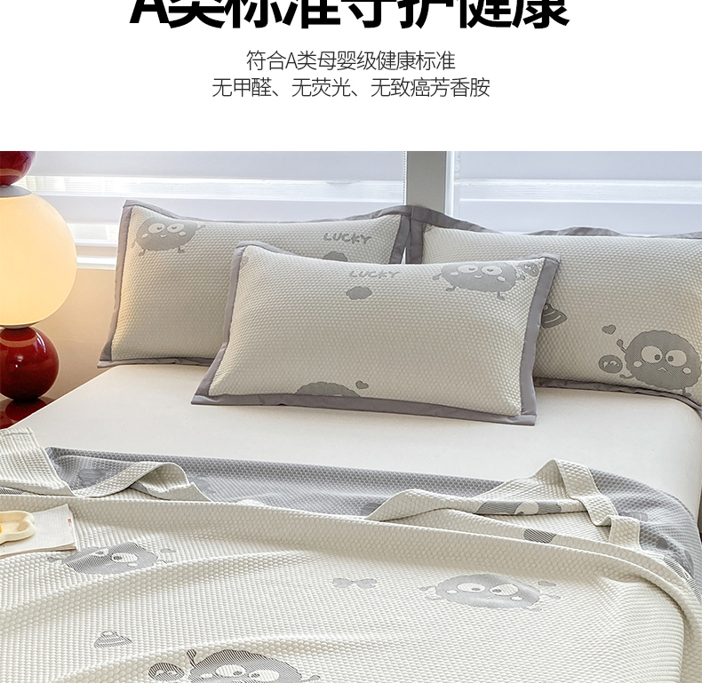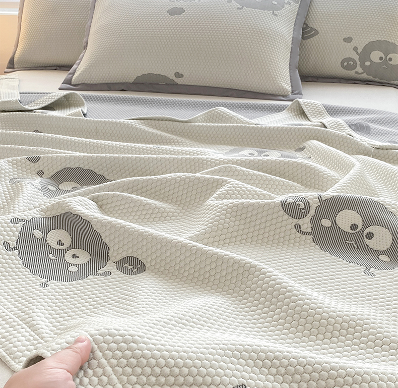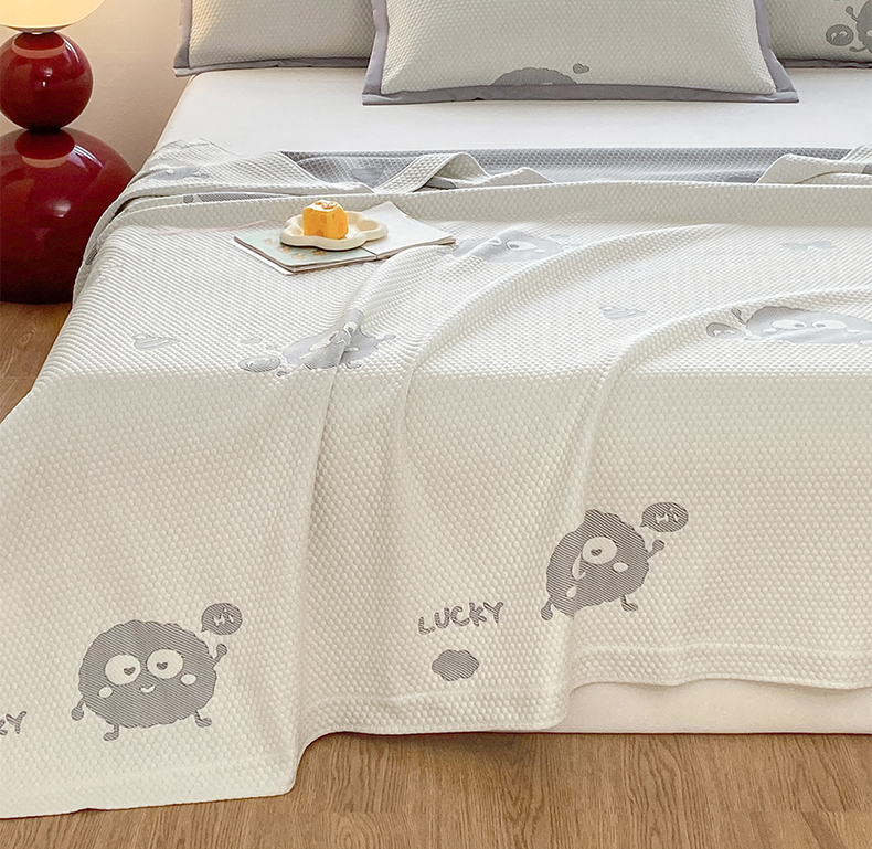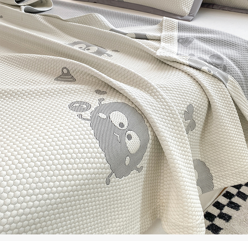 (总)典冠 2024新款A类凉感华夫格竹纤维冷感毯毛巾被,中灰,兔仔白,卡其,咖兔子,天兰,奶白,彩色煤球蓝,彼得兔庄园,恐龙乐园黄,时尚字母灰,波波小熊灰,淡紫,花团锦簇,蝴蝶结