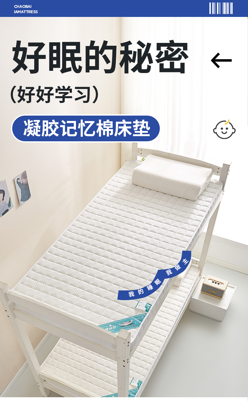 时奥家纺 2024新款华夫格凝胶记忆棉床垫学生款 华夫格白
