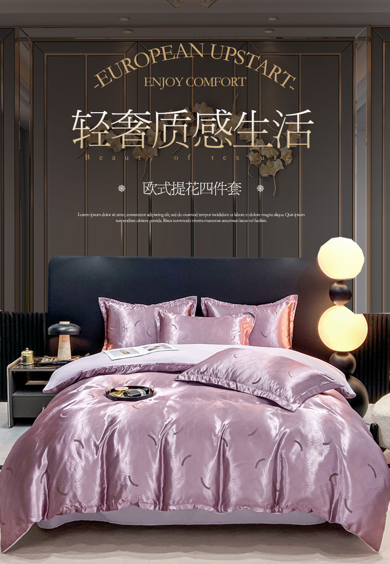 (总)莱欧纳家纺 2025新款提花夏被四件套,豆沙,灰色,香槟,紫色