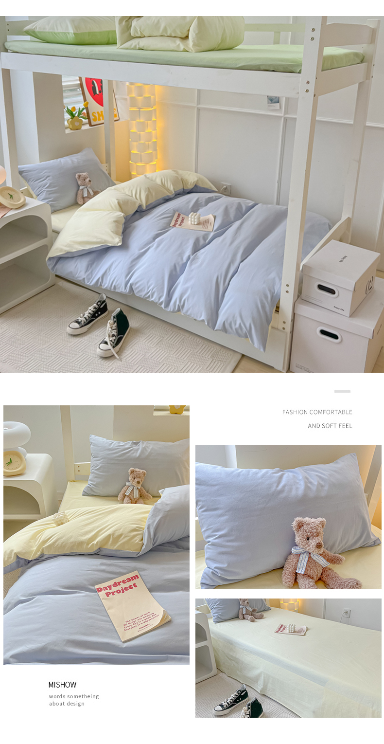 当前位置: 91家纺网 > 商品网购 > 床品套件 > 四件套 > 水洗棉四件套 > 盼季家纺 2024新款无印风格子纯色水洗棉床单被套学生宿舍三件套床上用品四件套 蓝芝士双拼