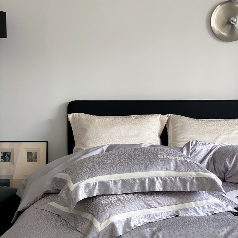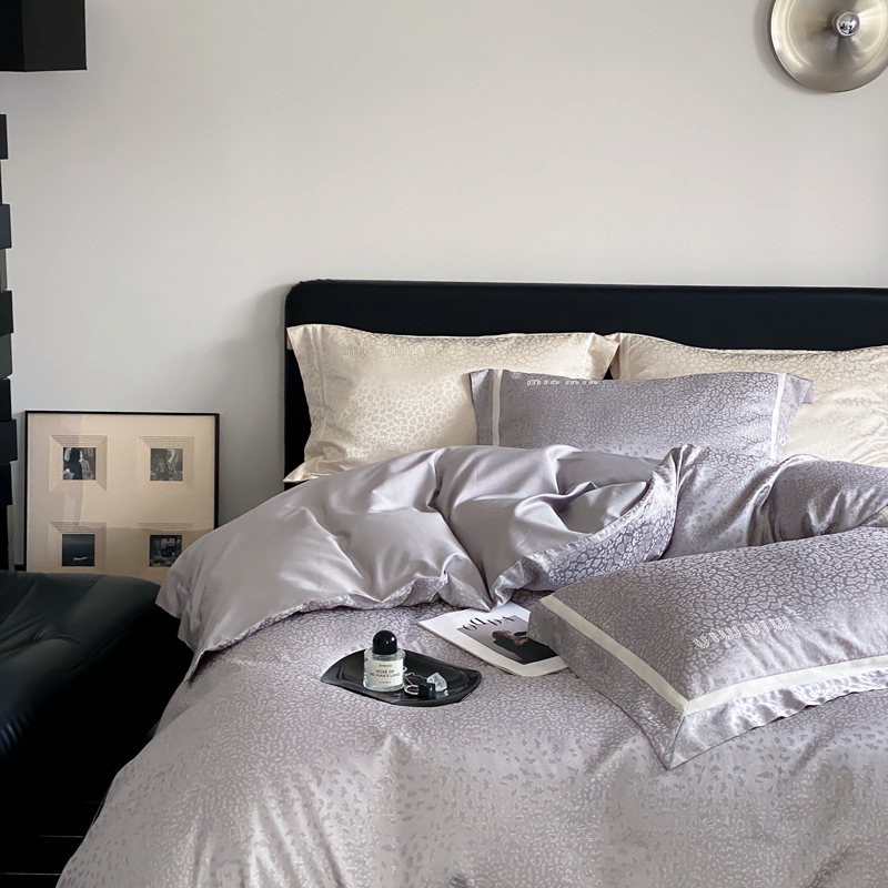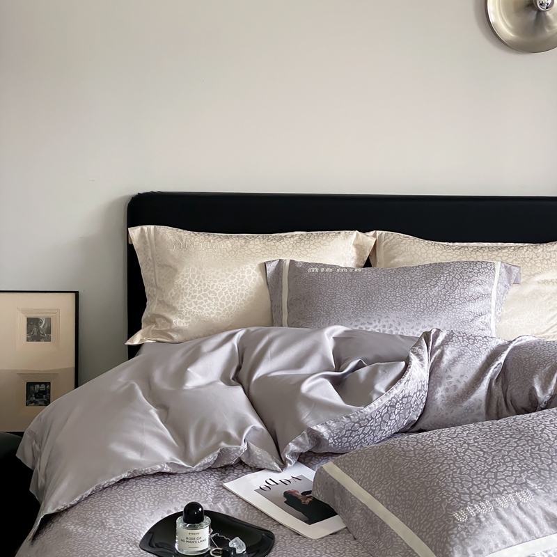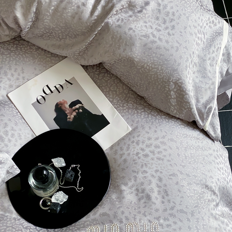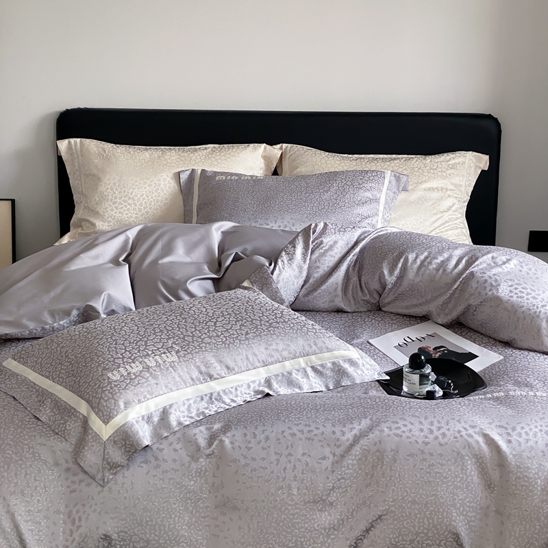MIU缪家居 2024新款100支全棉高精密金银线色织提花四件套-慵懒之豹 慵懒之豹-灰色