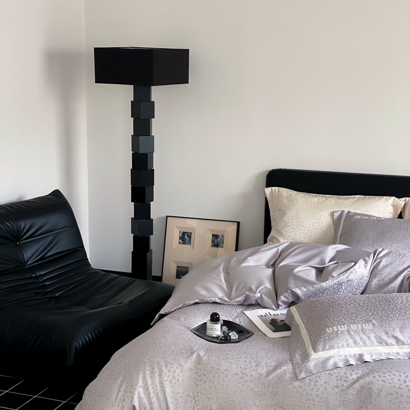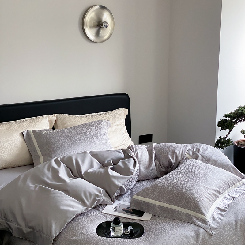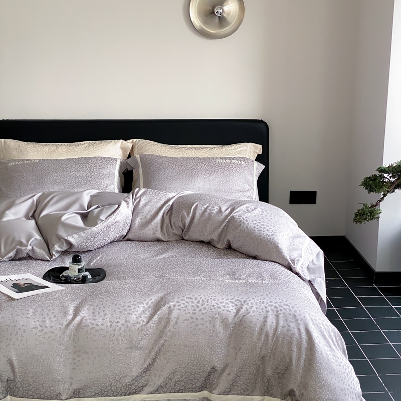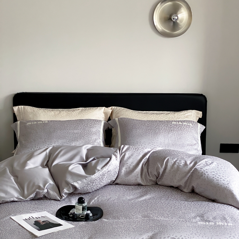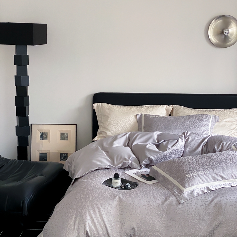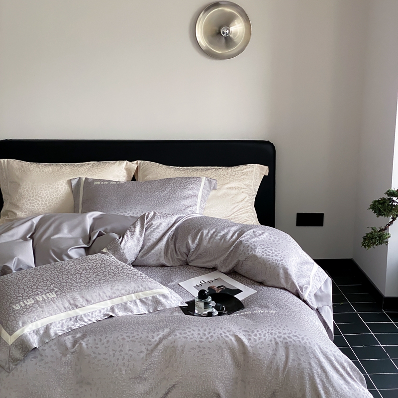 MIU缪家居 2024新款100支全棉高精密金银线色织提花四件套-慵懒之豹 慵懒之豹-灰色