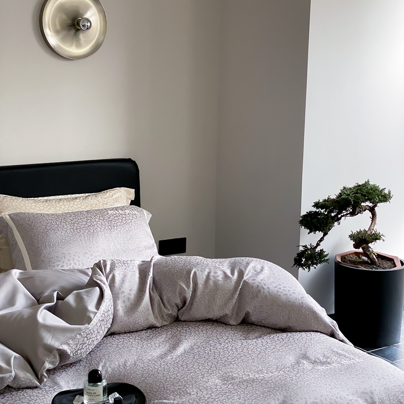 商品名称:MIU缪家居 2024新款100支全棉高精密金银线色织提花四件套-慵懒之豹 慵懒之豹-灰色
