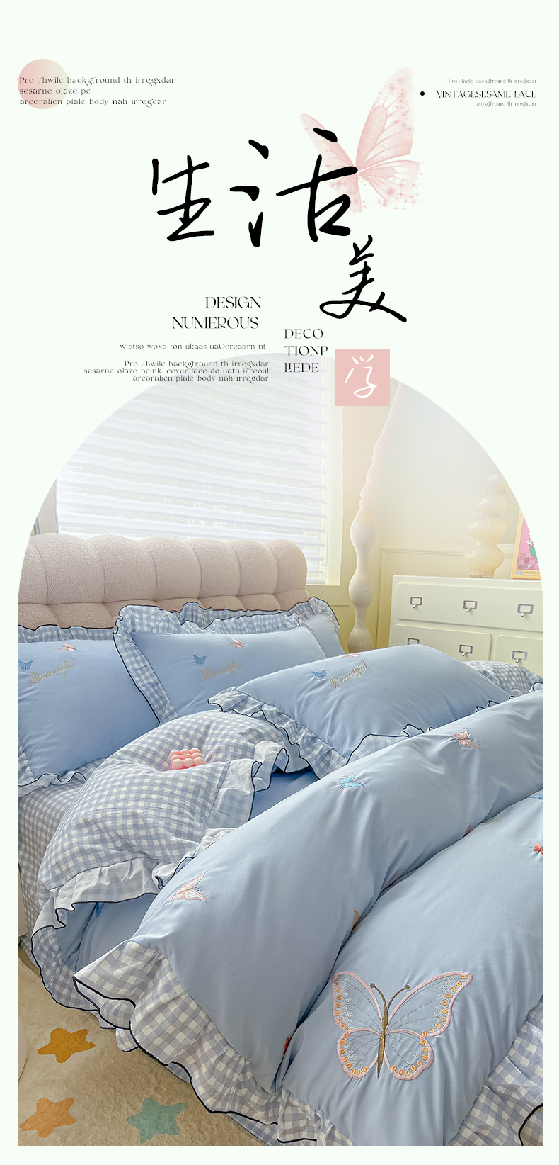 商品名称:韩都家居 2024新款ins韩系水洗云朵棉刺绣四件套【蝶影仙踪】 蝶影仙踪-兰