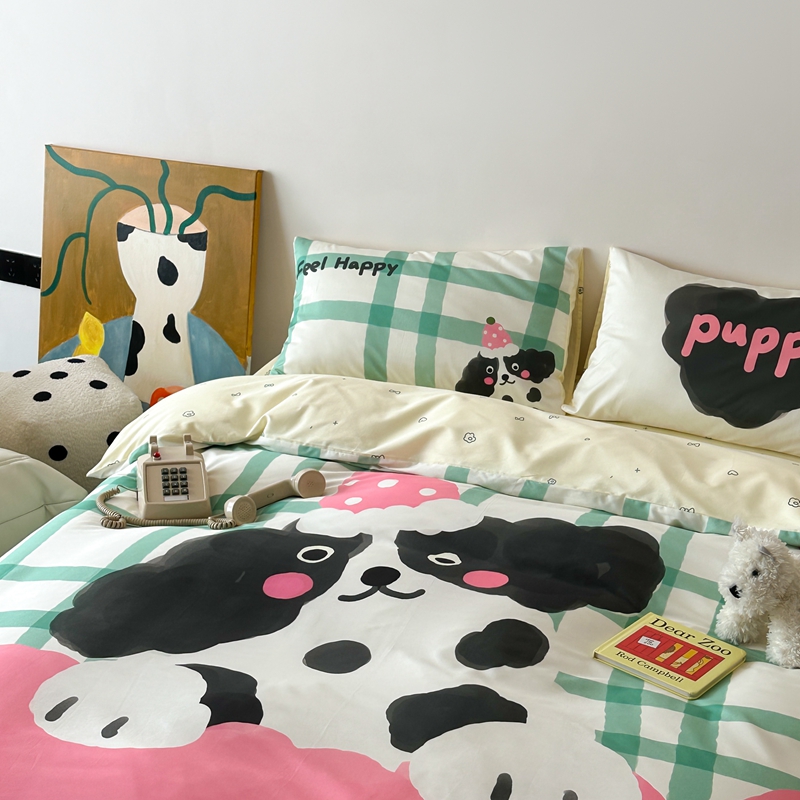 桃喜 2024新款全棉大版卡通混搭四件套 快乐边牧